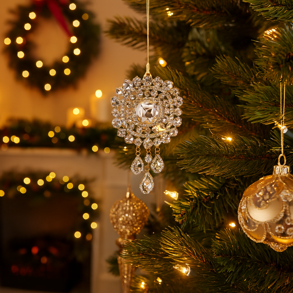Pendaglio in vetro con diamanti – Un tocco di luce e raffinatezza per il tuo albero! ✨