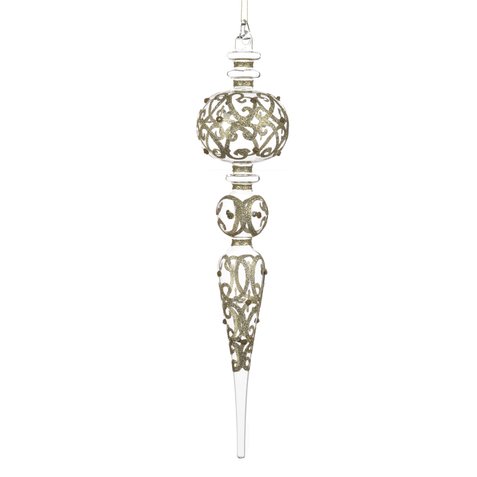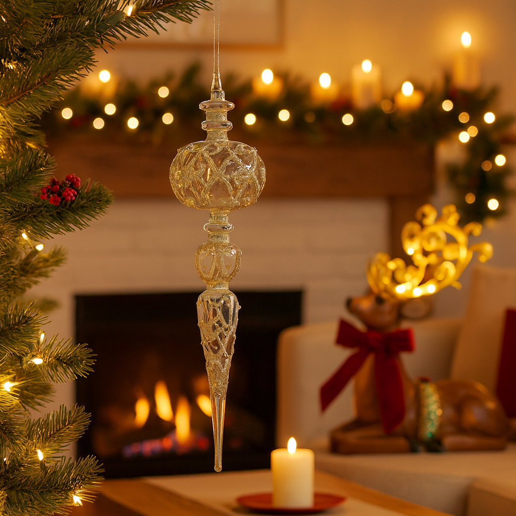 Pendaglio in vetro trasparente con decorazioni, addobbo natalizia per Albero di Natale, h 38 cm