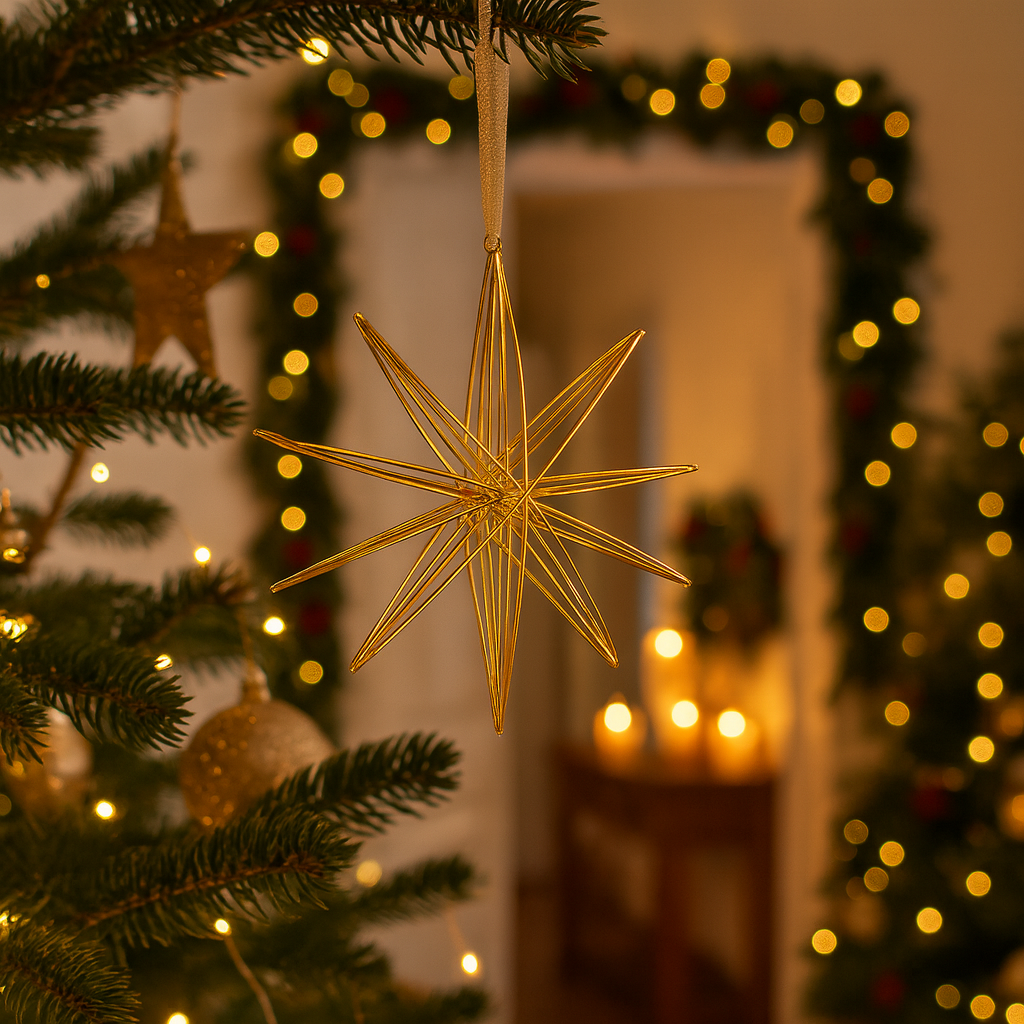 Pendaglio oro a forma di stella di natale decorazione natalizia