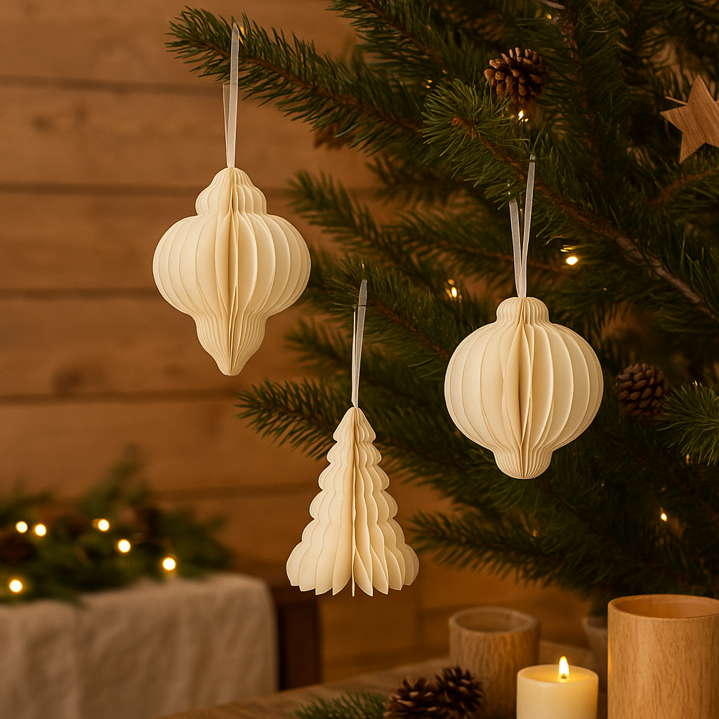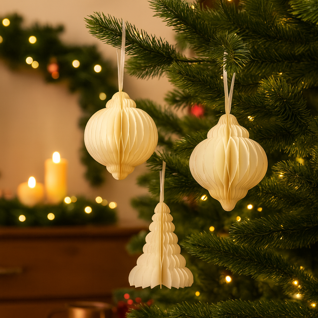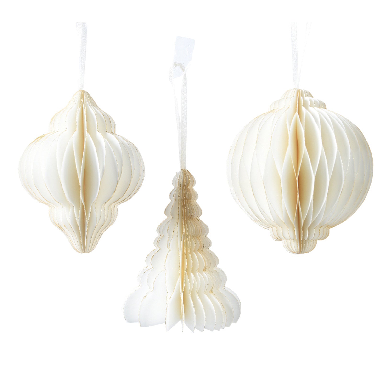 Pendaglio oro e bianco decorazione natalizia, 3 pezzi