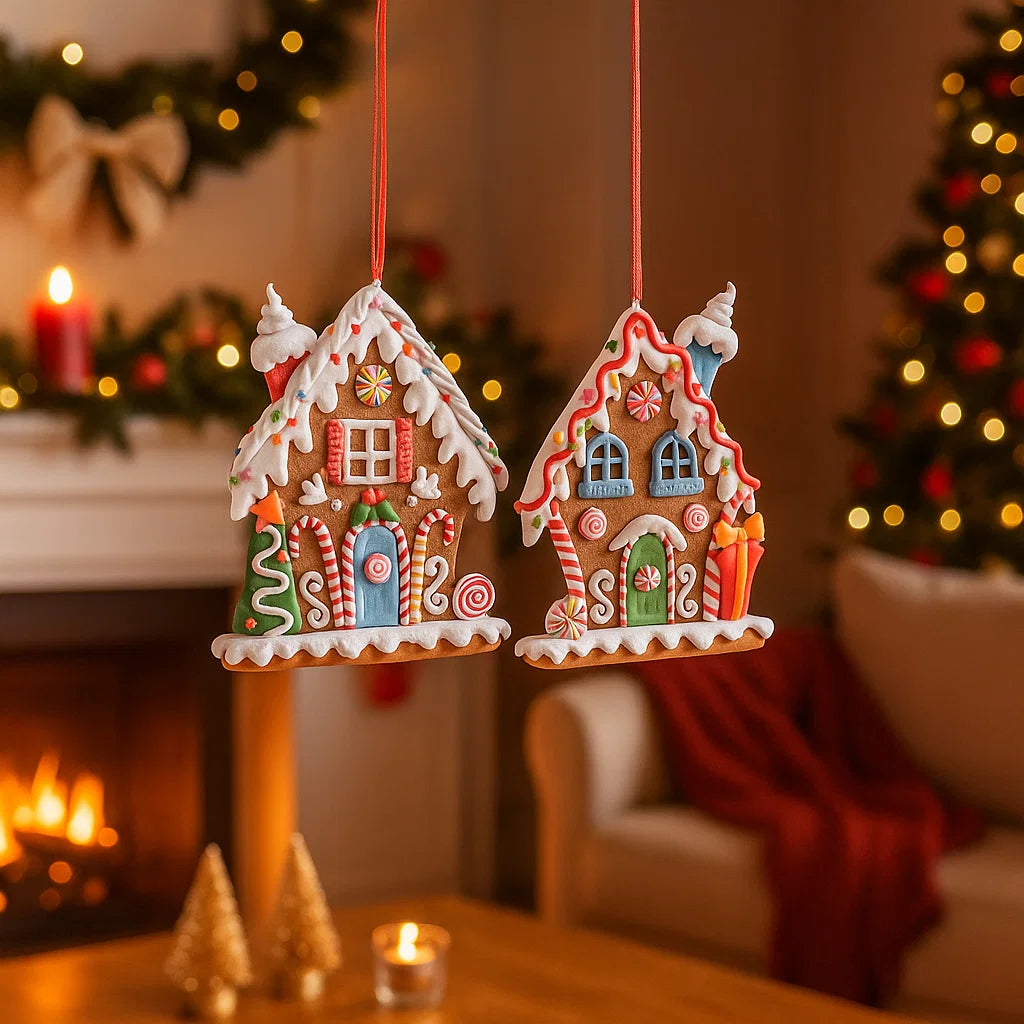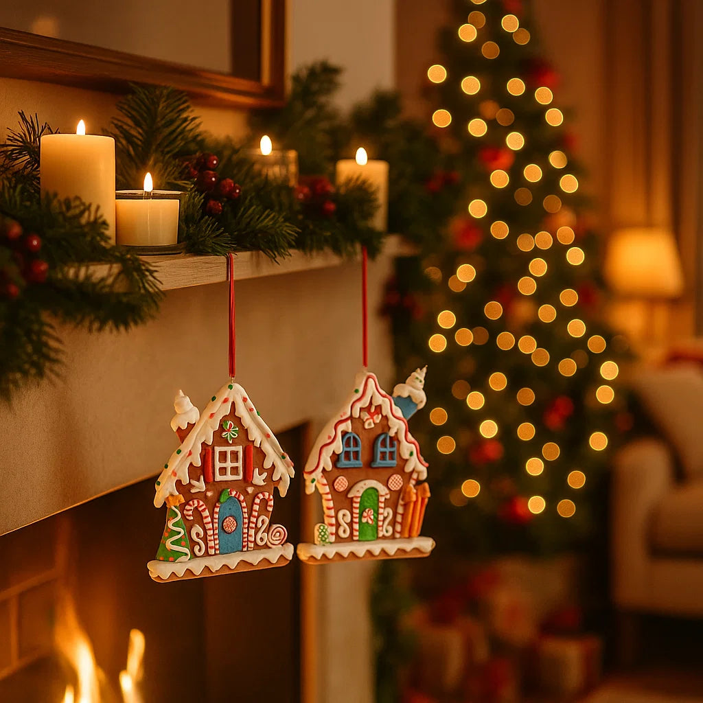 Questo pendaglio raffigura un delizioso omino di pan di zenzero accompagnato da una varietà di utensili da cucina in miniatura, simboli dell'arte culinaria tipica delle festività.