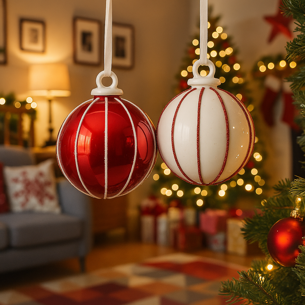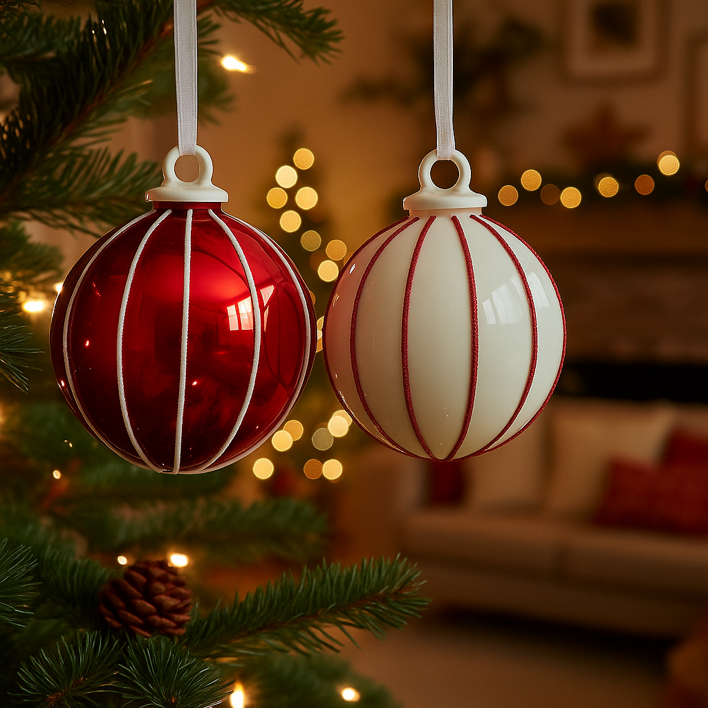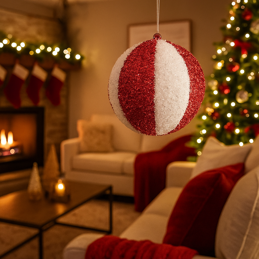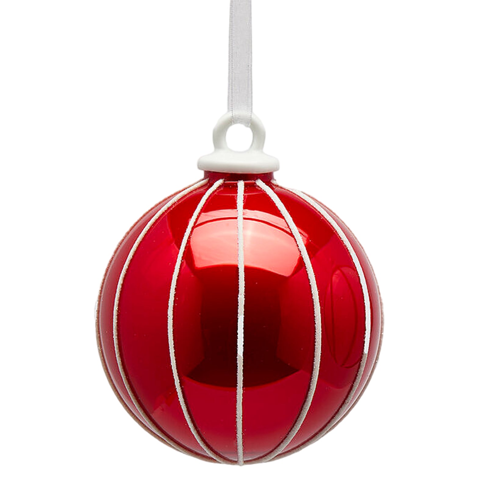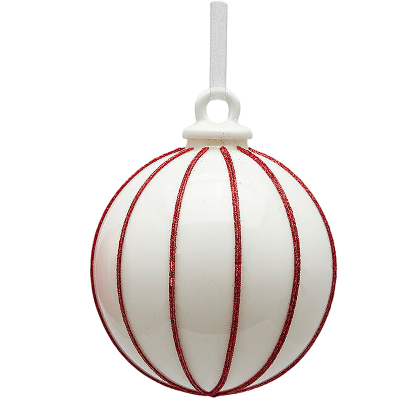 Questo magnifico addobbo è il perfetto accessorio per qualsiasi stanza, grazie alla sua forma originale e al suo design unico. Le linee pulite e elemento sferico creano un contrasto strepitoso, mentre i colori bianco e rosso danno un tocco di freschezza e dinamismo.