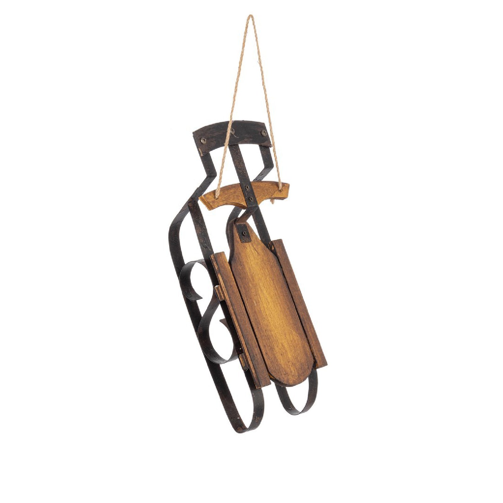 Pendaglio slitta di Cortina in metallo, legno e iuta