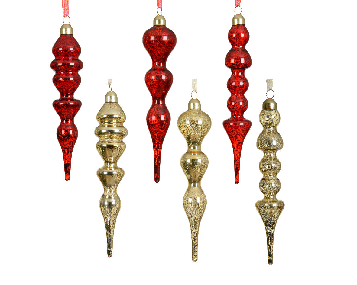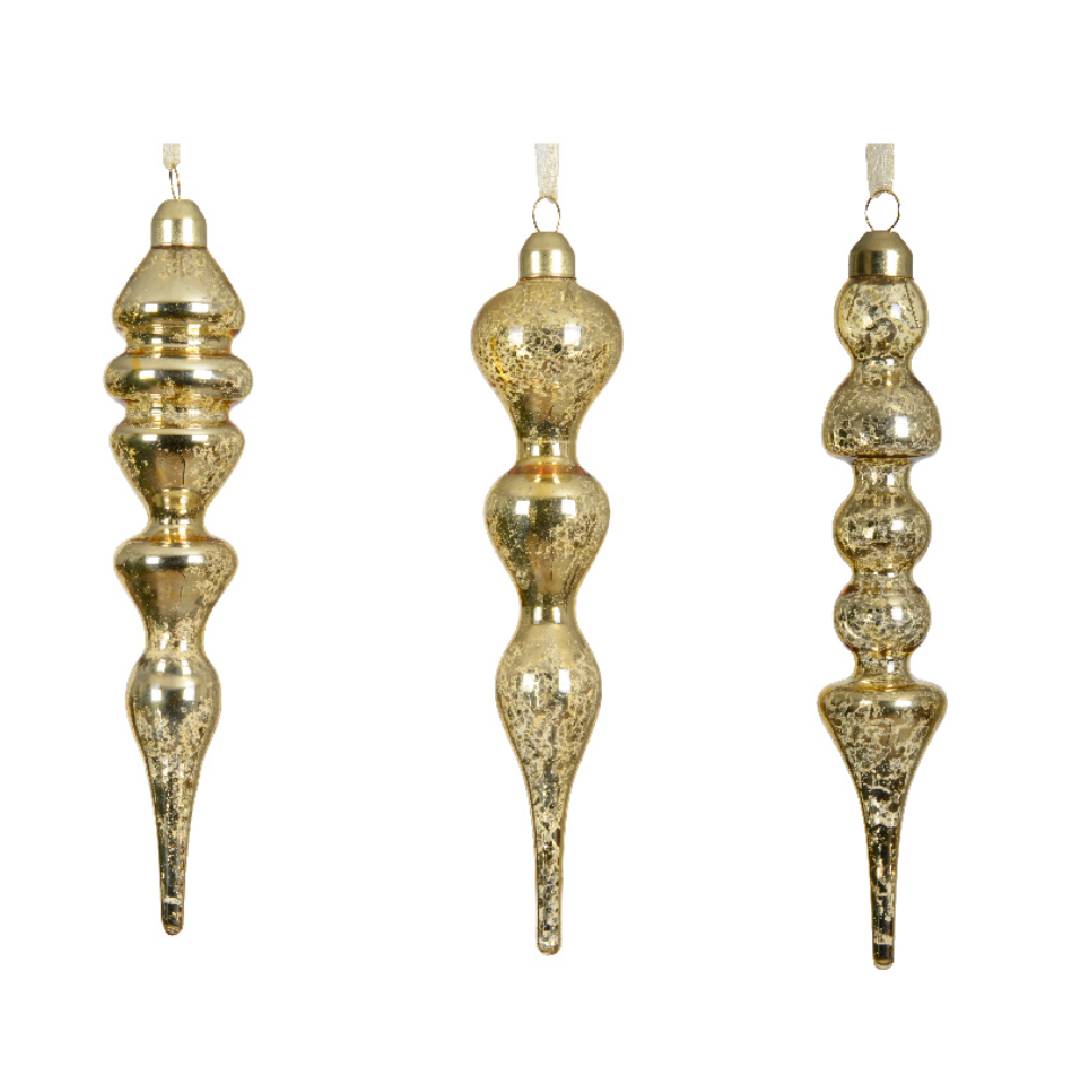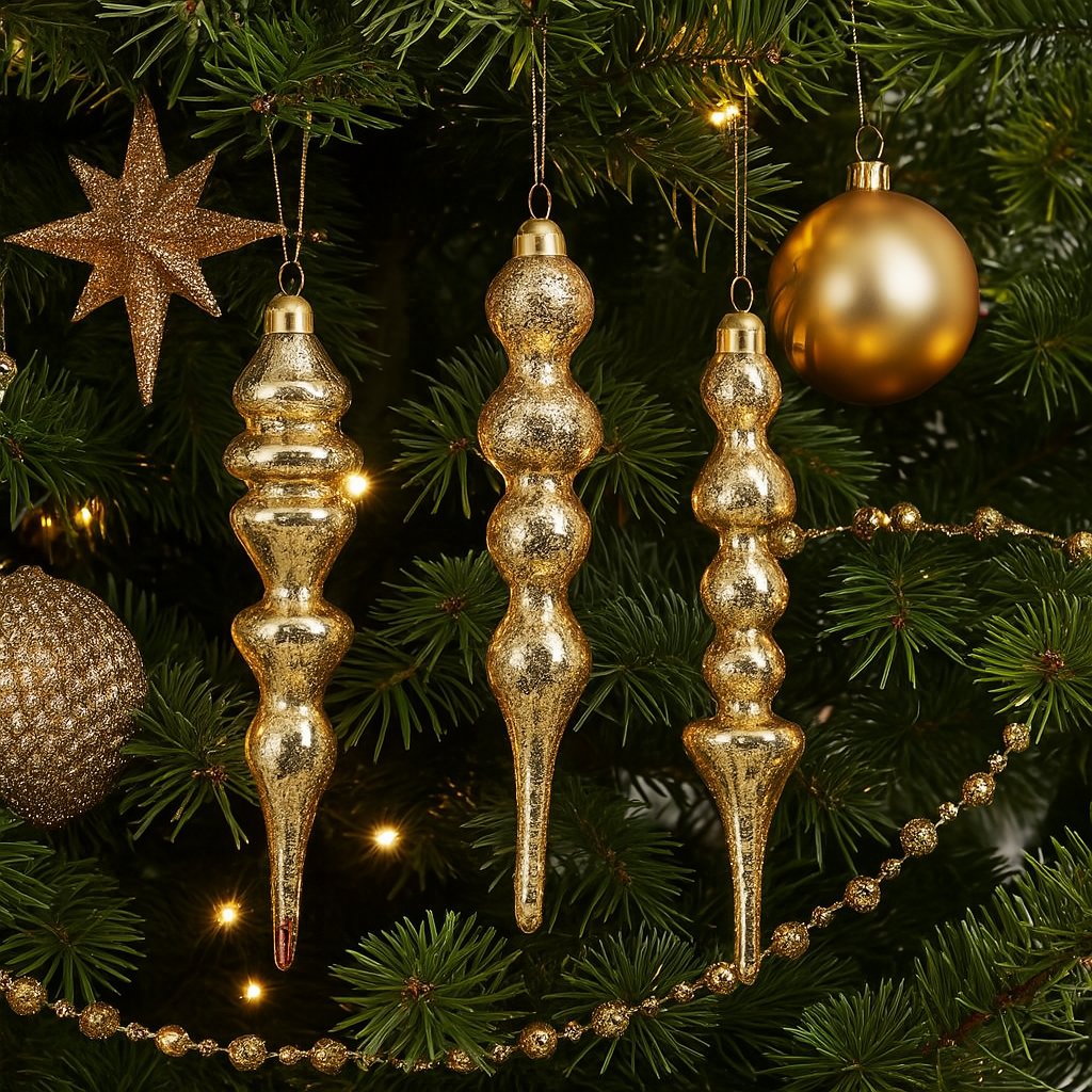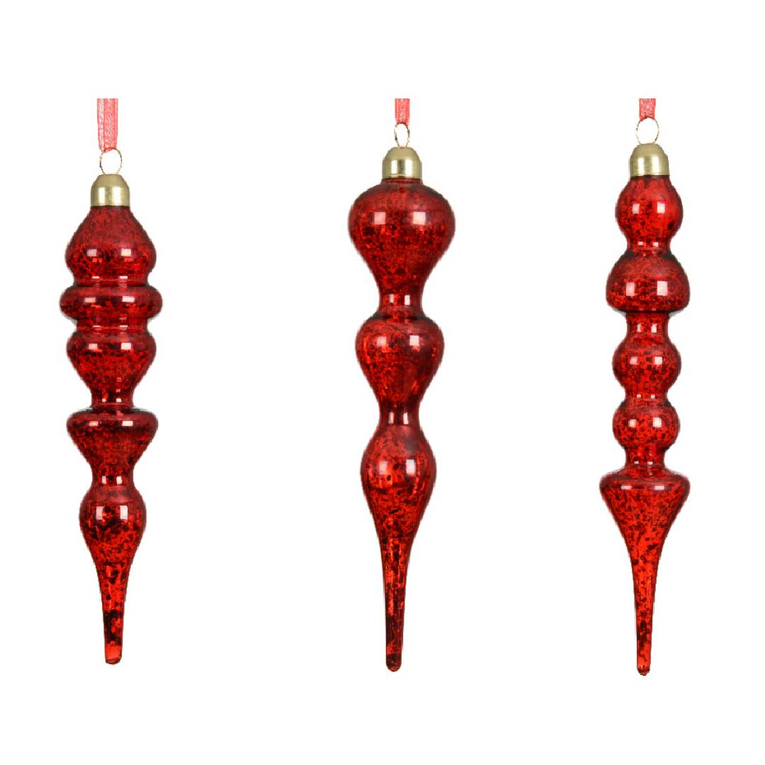 Palline allungato in vetro colorato per albero di Natale, confezione da 3 pezzi