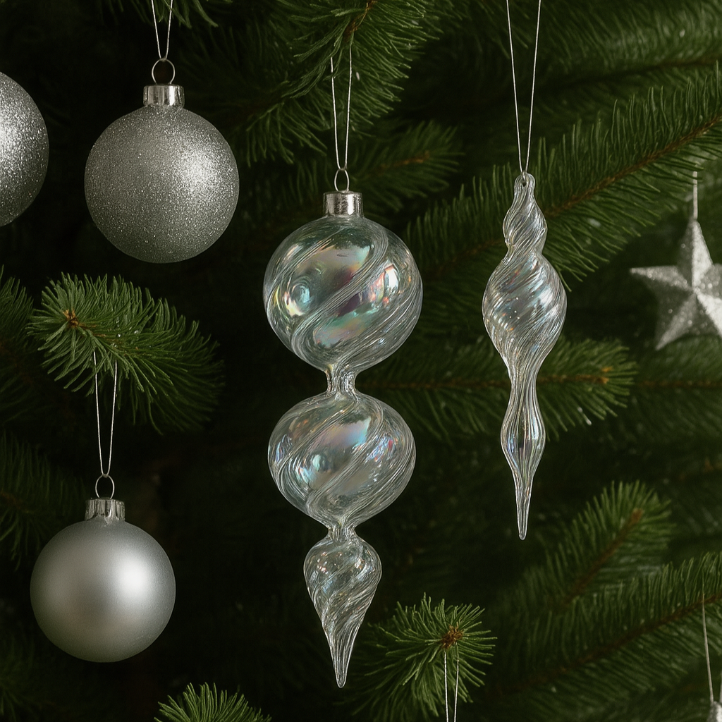 Pendente allungato in vetro iridescente per albero di Natale, decorazione da 20 cm