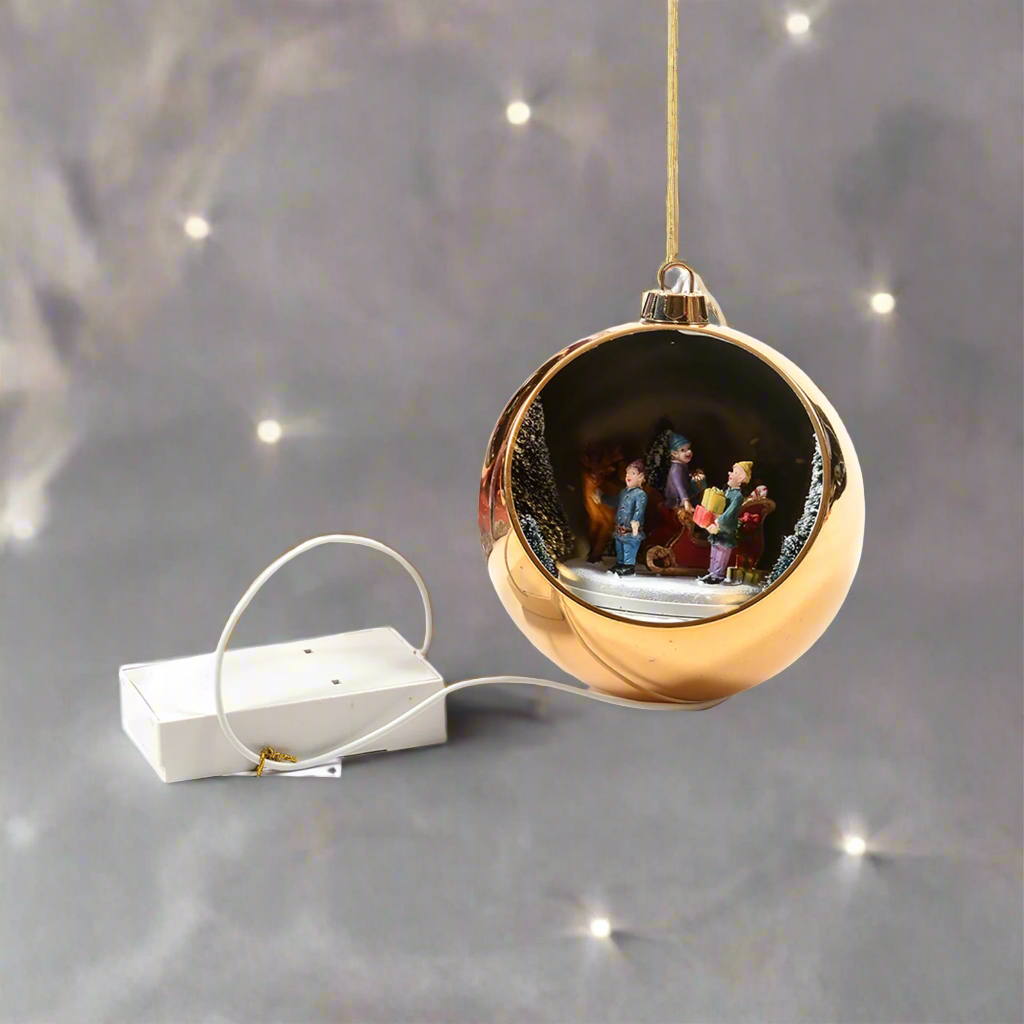 Caratterizzata da un design intricato e dettagliato, questa sfera incarna l'essenza dell'incanto natalizio attraverso un mix armonioso di elementi visivi, sonori e cinetici.