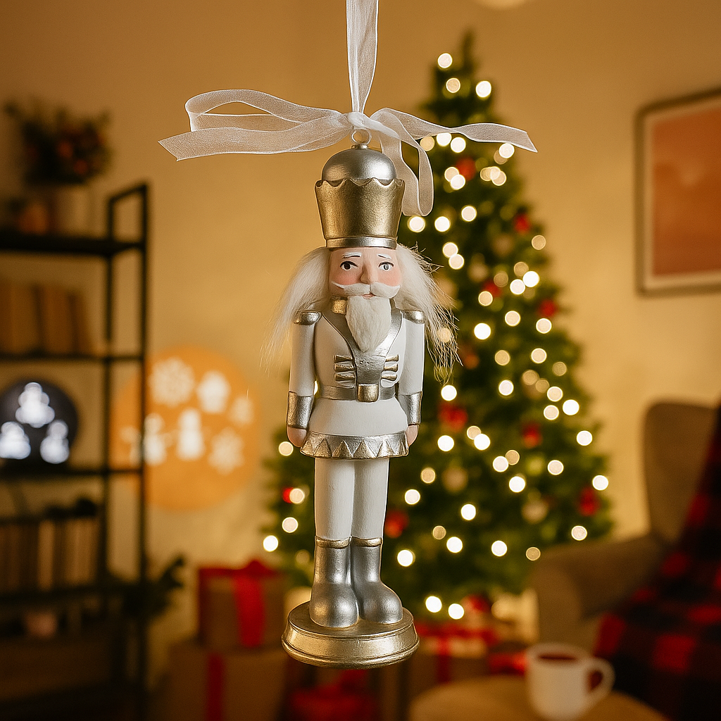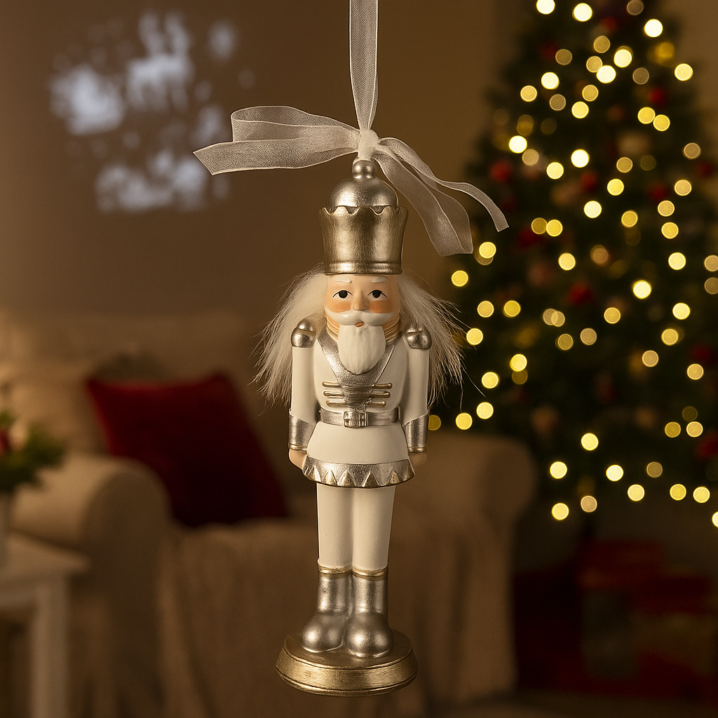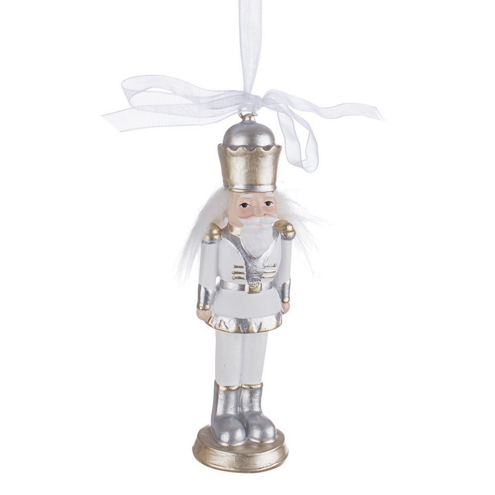 Soldatino "Galles" bianco e oro appendibile con nastro in poliresina
