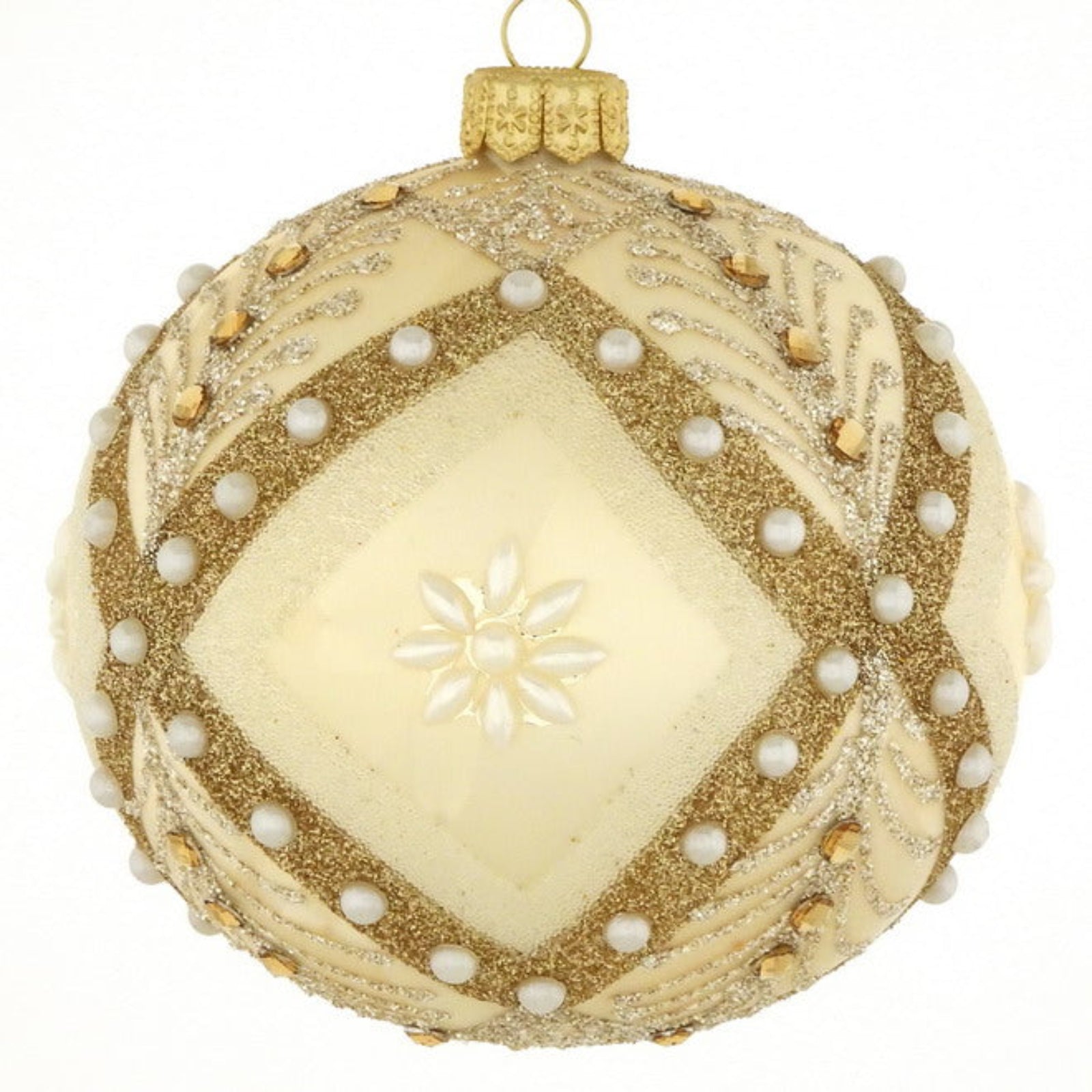 Palline per albero di Natale in vetro decorate color Beige Perla Opaco