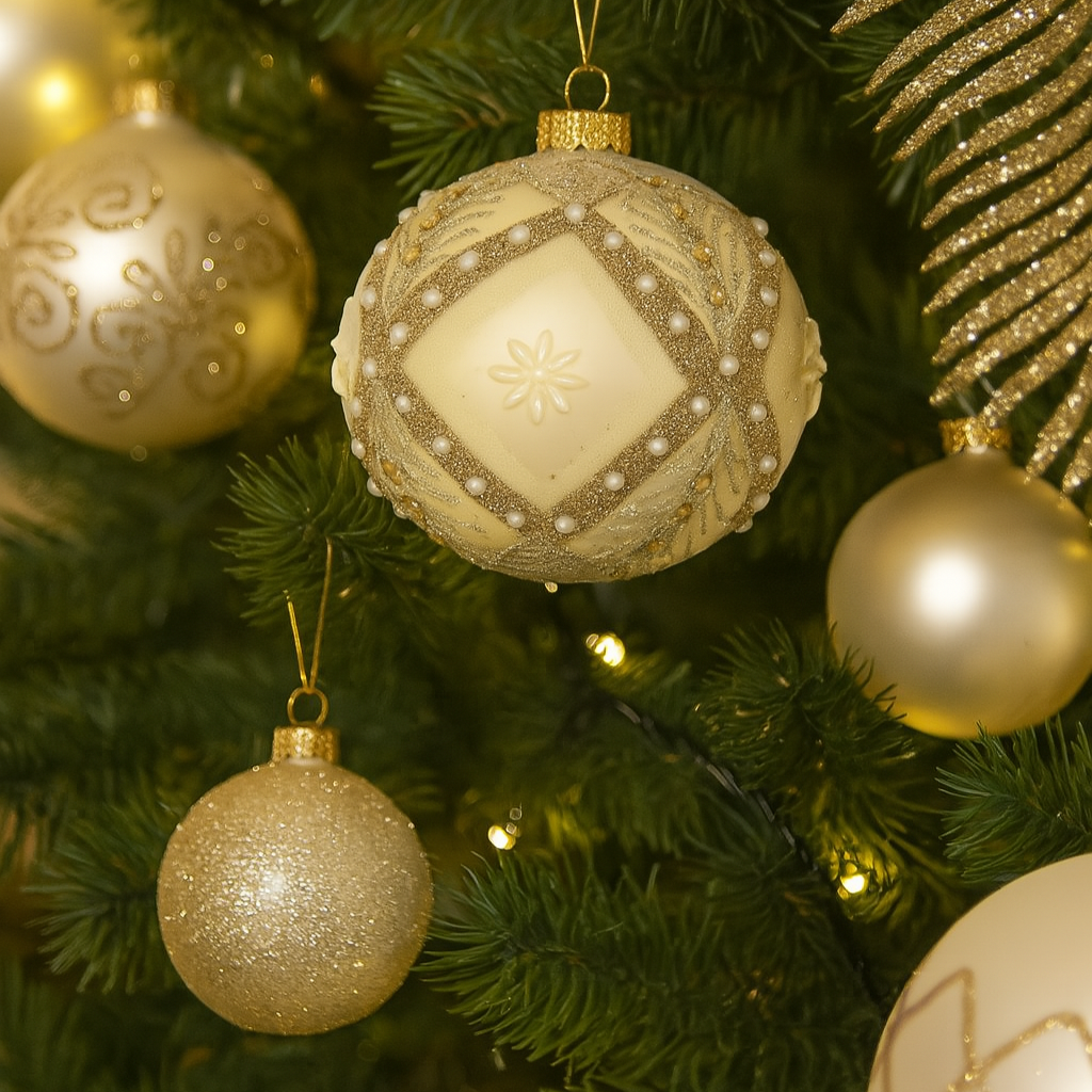 Palline per albero di Natale in vetro decorate color Crema Lucido