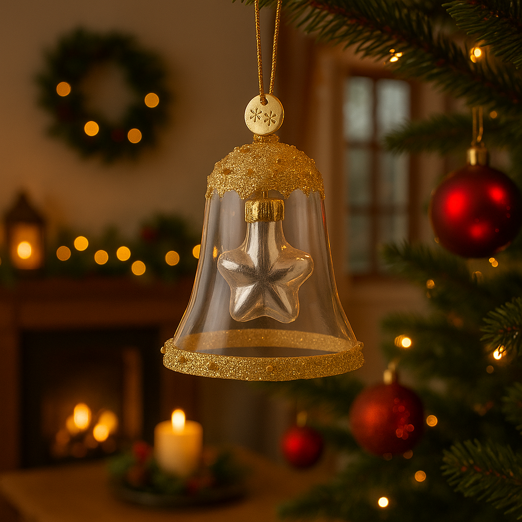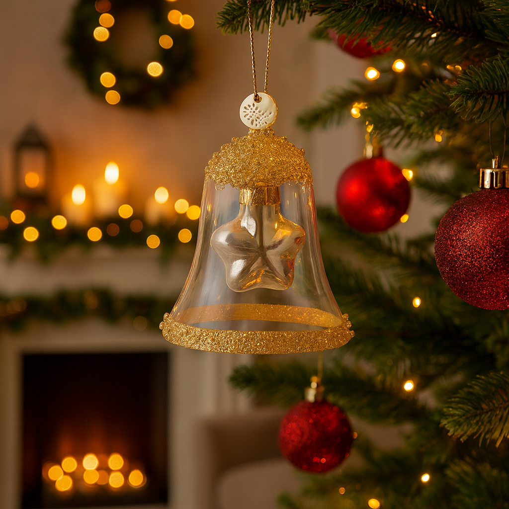 Pendaglio a forma di campana con stella champagne per albero di natale h 7,5 cm