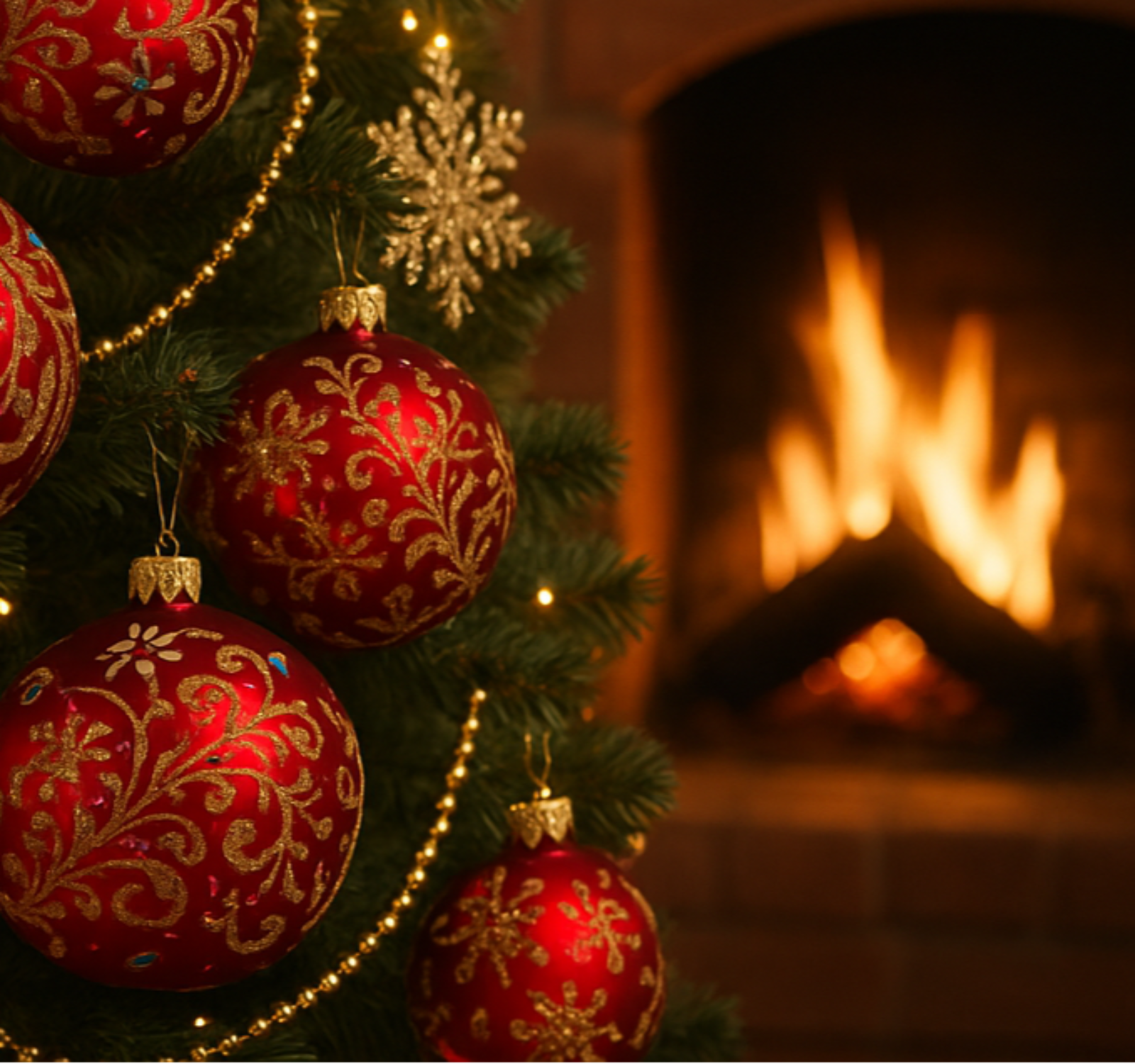 Sfondo rosso intenso, simbolo del Natale per eccellenza, che dona vivacità e calore.