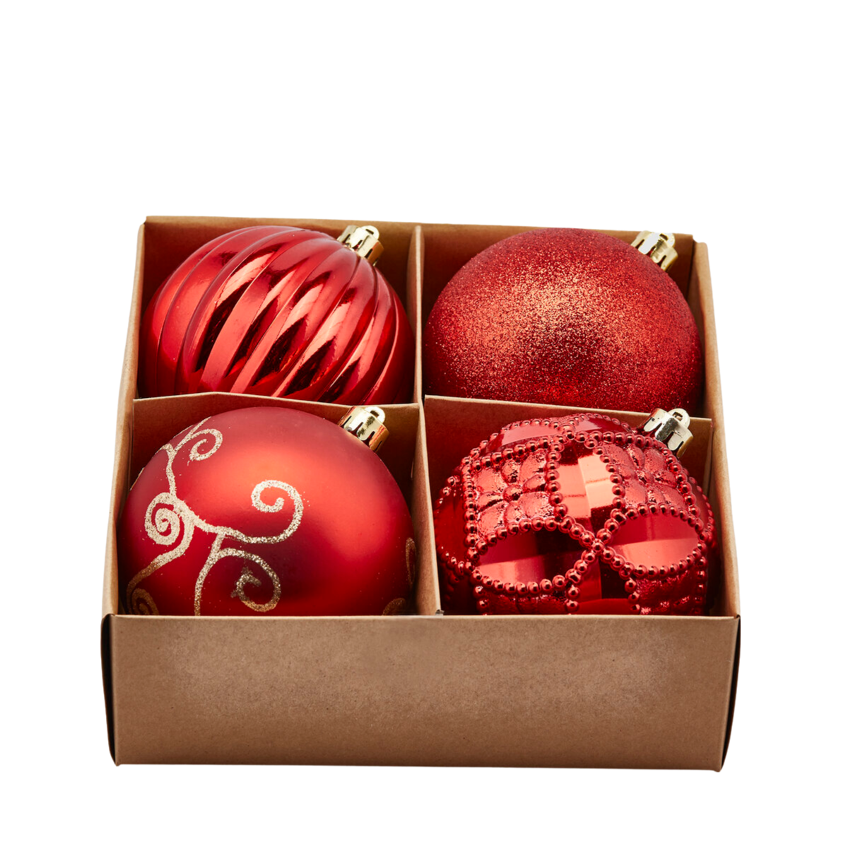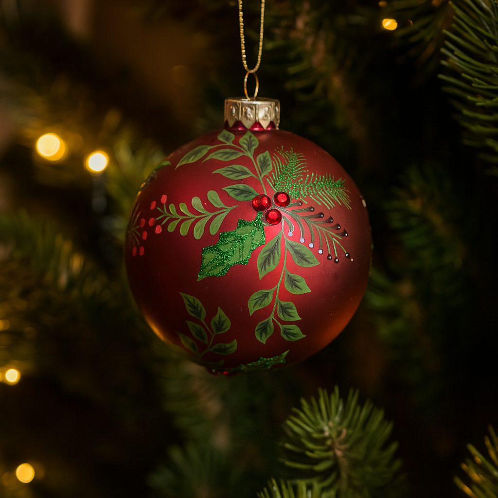 • Finitura opaca che dona alla superficie un aspetto vellutato e contemporaneo, creando contrasti eleganti se abbinata a palline lucide o a decorazioni metalliche dorate e argentate
