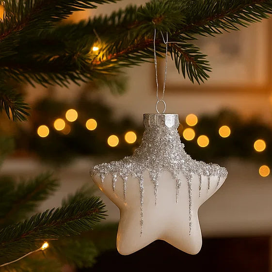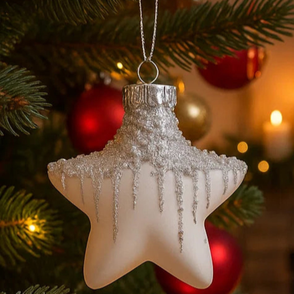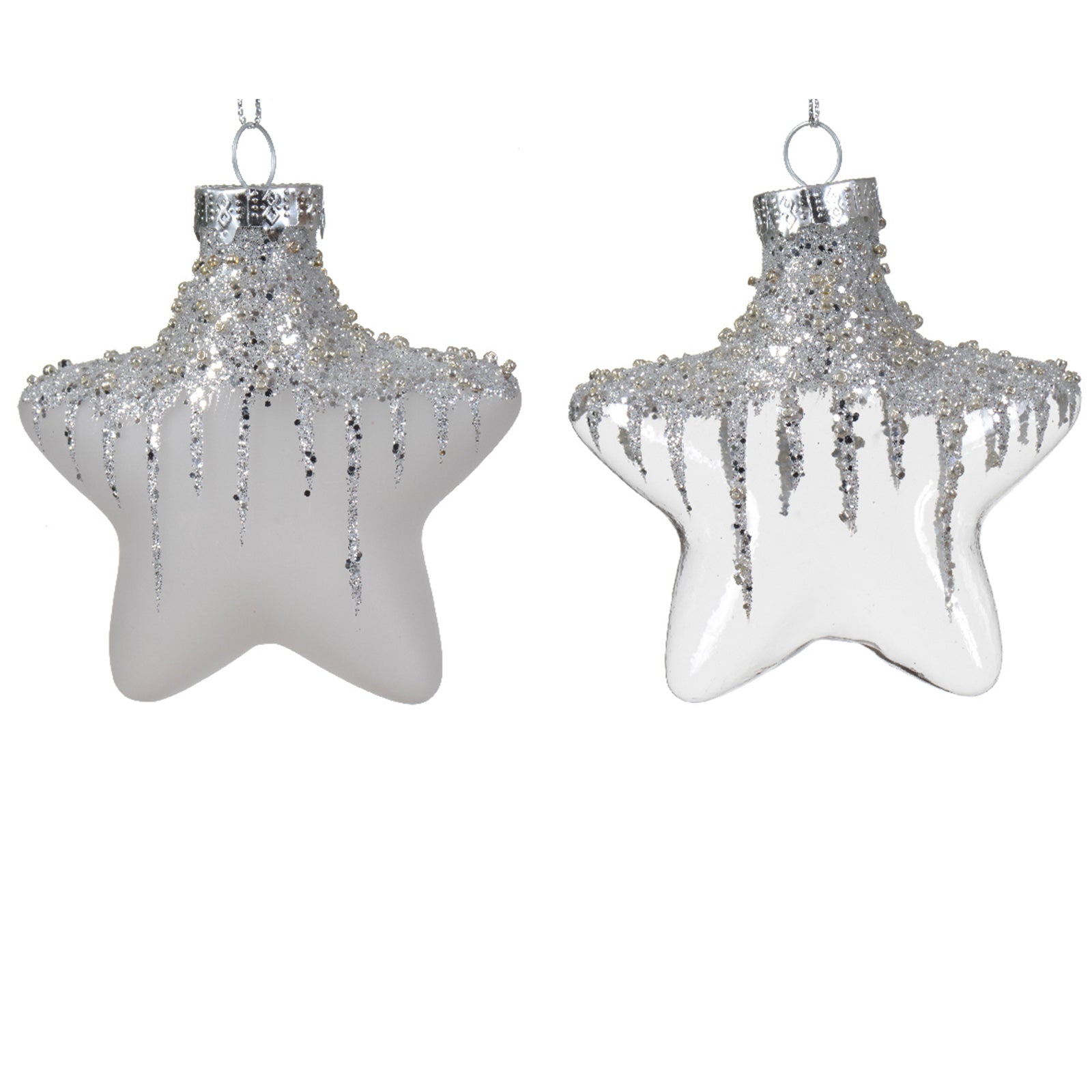 Palline a forma di stella in vetro per albero di natale argento, confezione da 2 pezzi