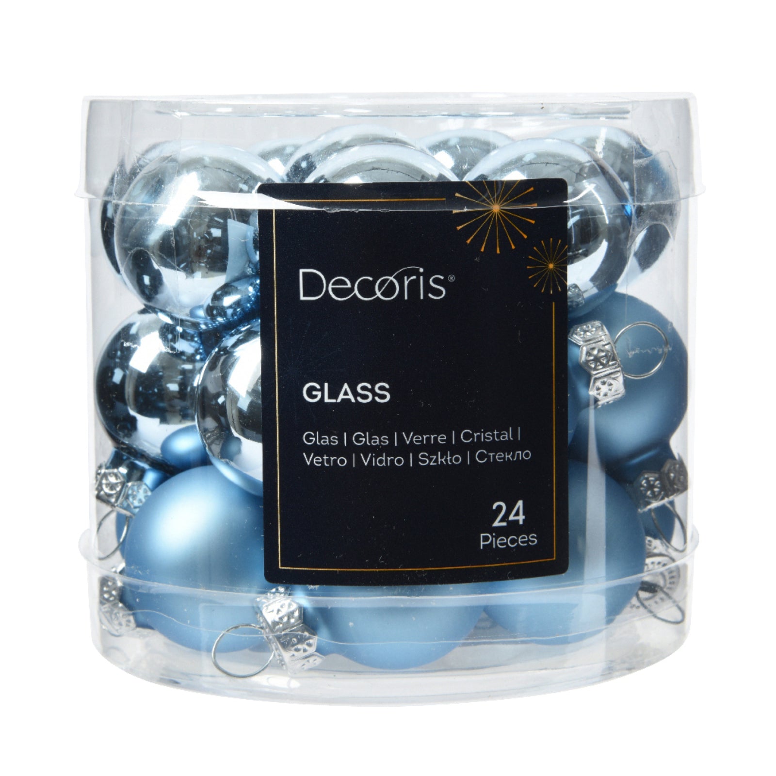 Palline in vetro per albero di natale blu ghiaccio decorazione natalizia 24 Palline da Ø 2,5 cm