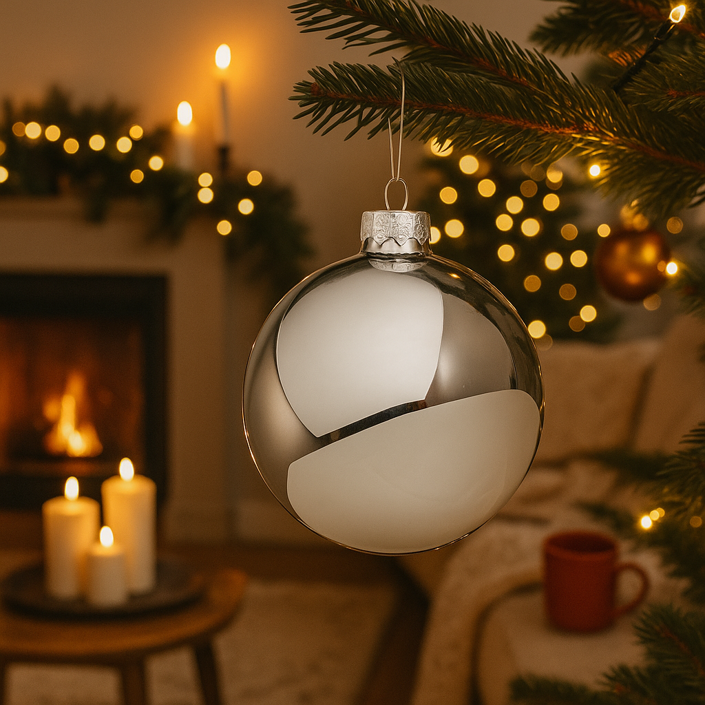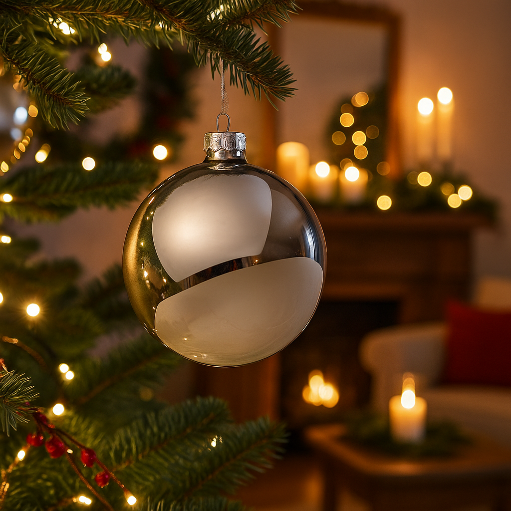 Palline per albero di natale in vetro Argento Lucido pendaglio Tinta Unita