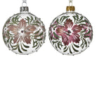 Palline per albero di natale in vetro color Bianco con Fiori da 8 cm, confezione da 6 pezzi