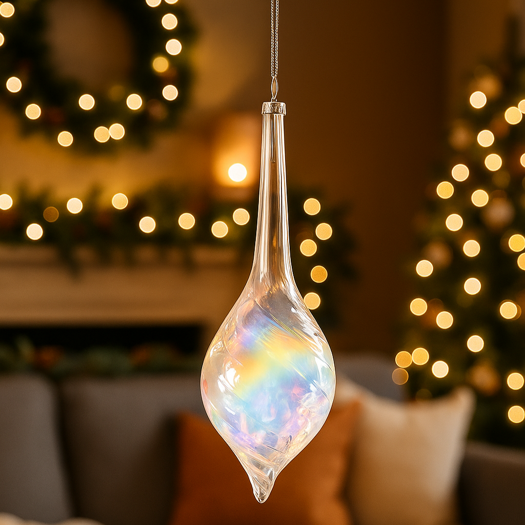 Pendente per albero di Natale in vetro Fuso lungo Trasparente decorativo