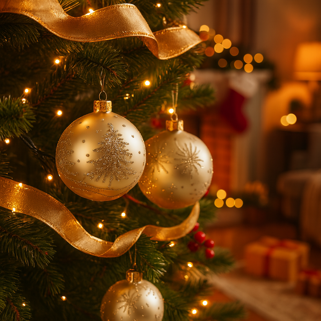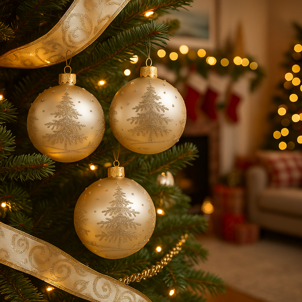 Palline in vetro "Oro Saturno" per albero di Natale moderno ed elegante