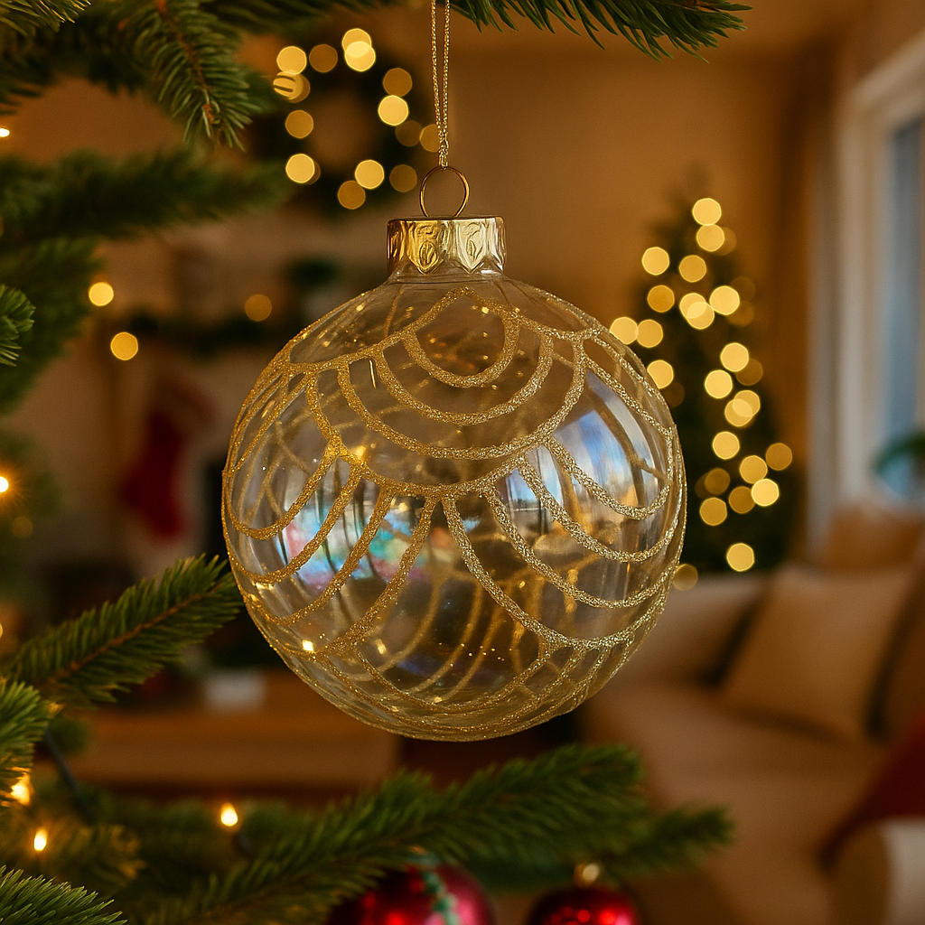 Pendagli in vetro "Oro Saturno" per albero di Natale moderno ed elegante