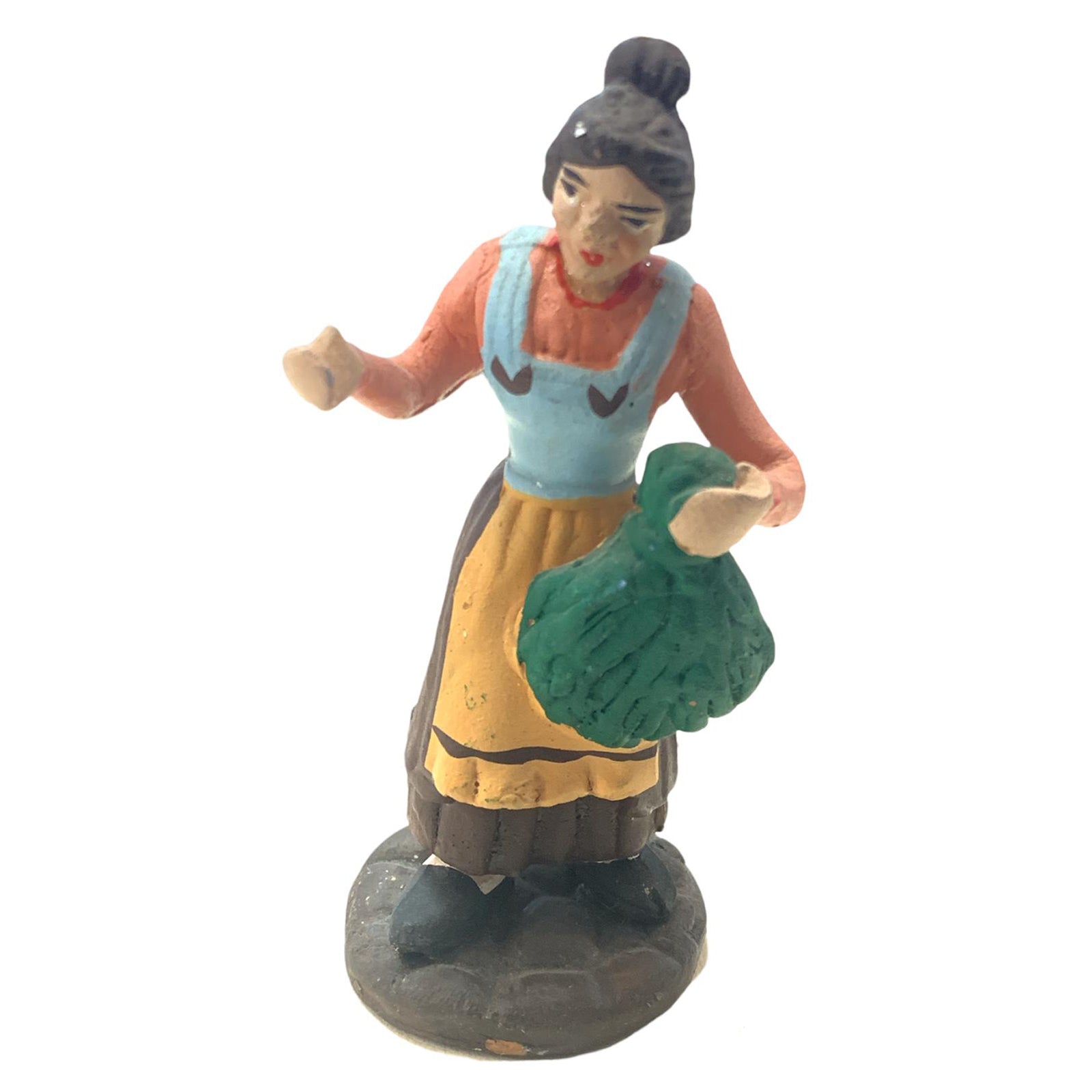 Donna con mazzo di verdura statuetta in terracotta artigianale per presepe napoletano da h 10 cm