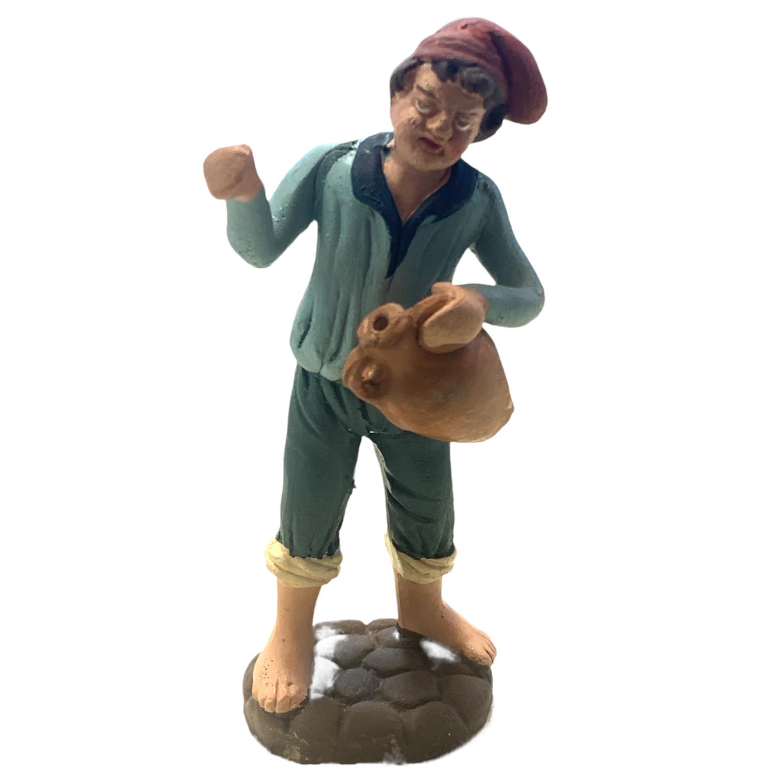 Pastore con brocca statuetta in terracotta artigianale per presepe napoletano da h 10 cm
