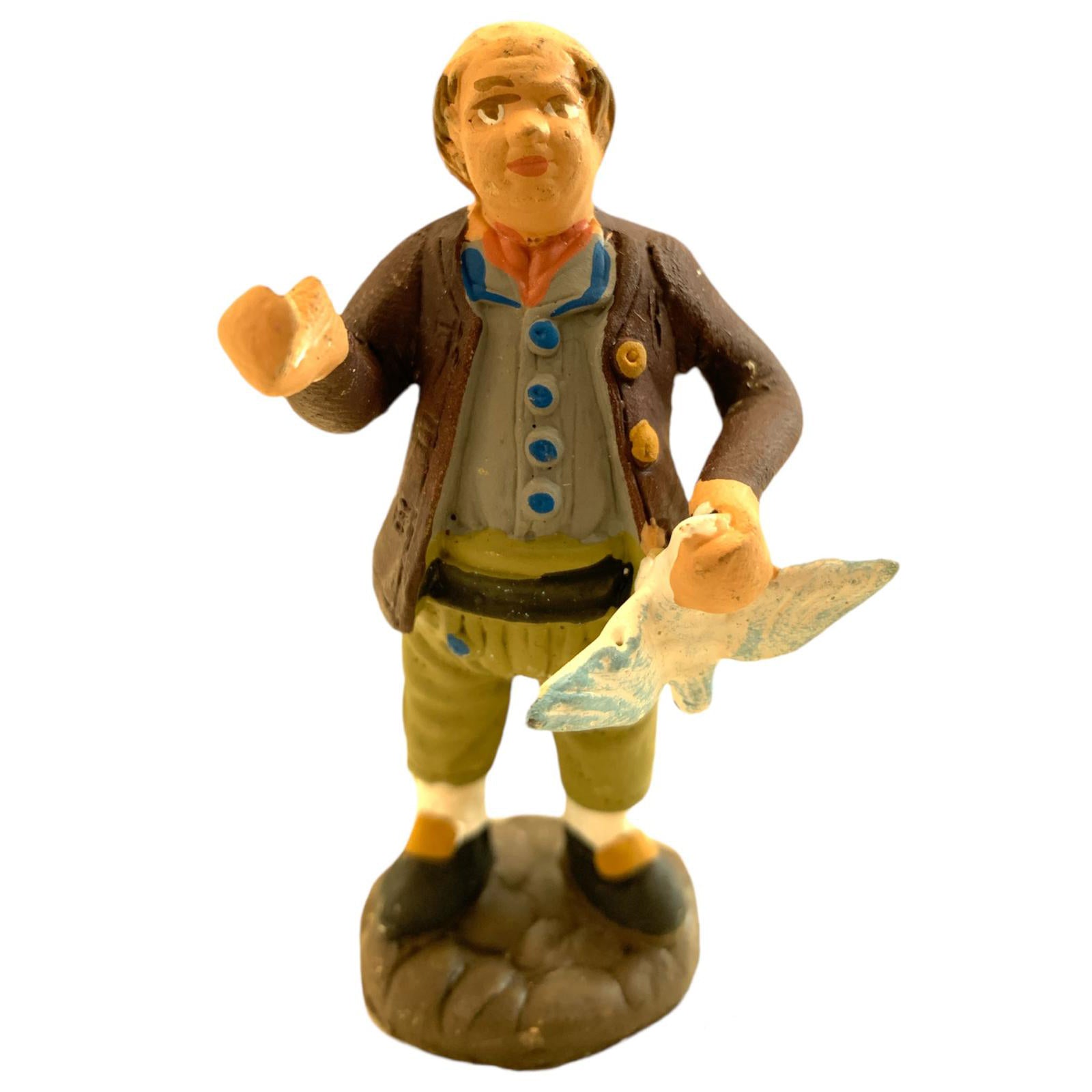 Pastore con colomba statuetta in terracotta artigianale per presepe napoletano da h 7 cm