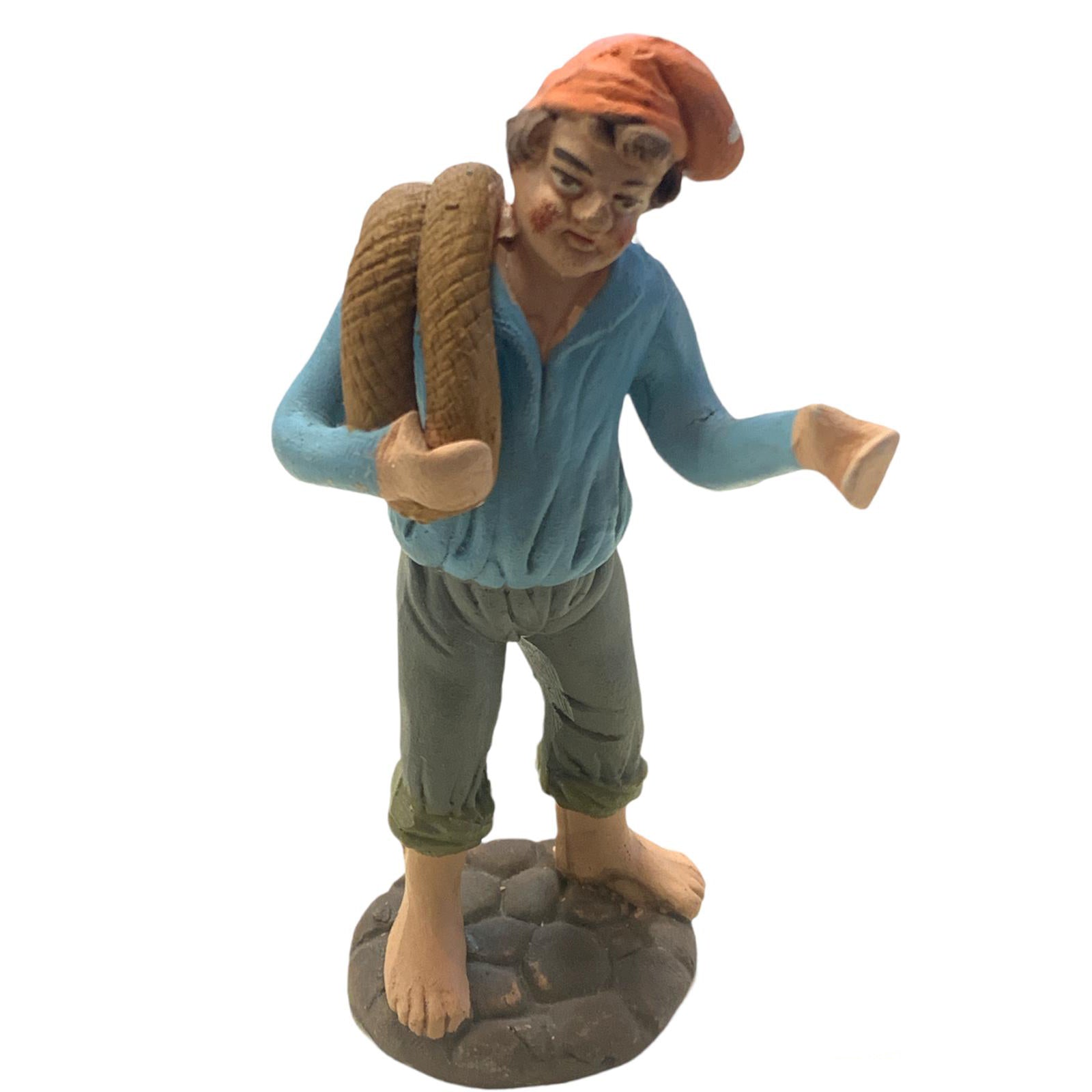 Pastore con corda statuetta in terracotta artigianale per presepe napoletano da h 10 cm