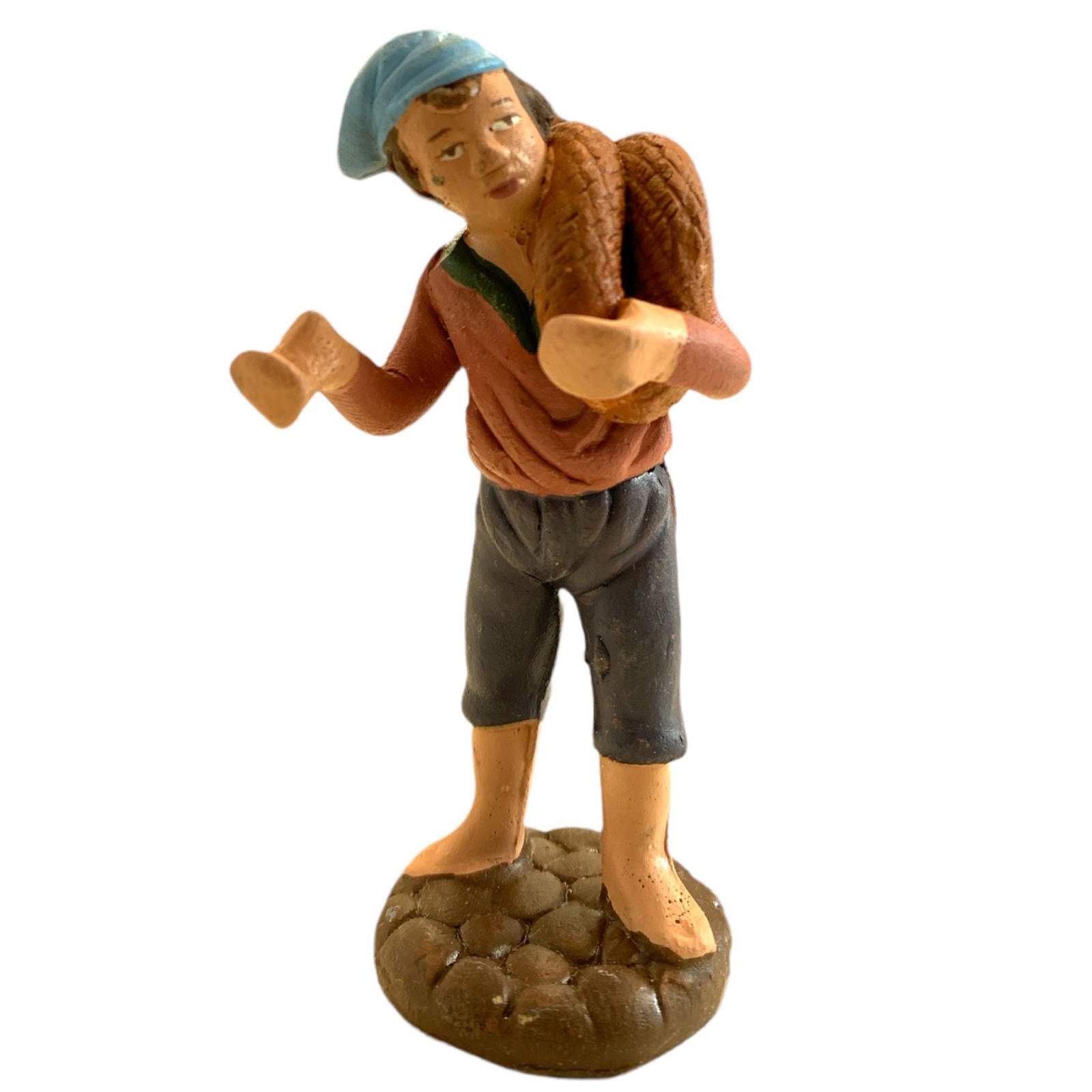 Pastore con corda statuetta in terracotta artigianale per presepe napoletano da h 7 cm