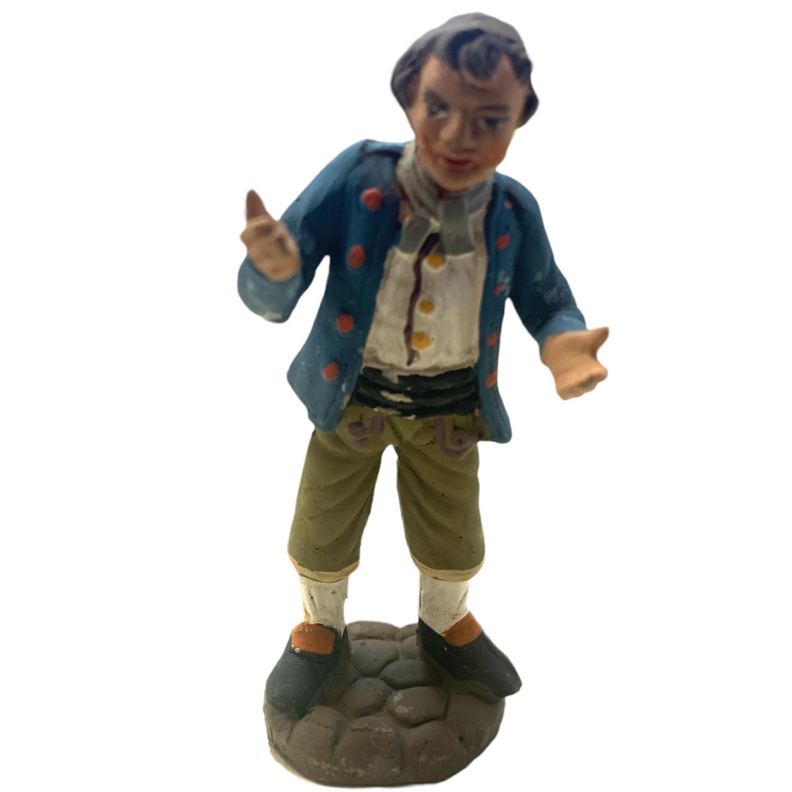 Pastore con giacca blu statuetta in terracotta artigianale per presepe napoletano da h 10 cm