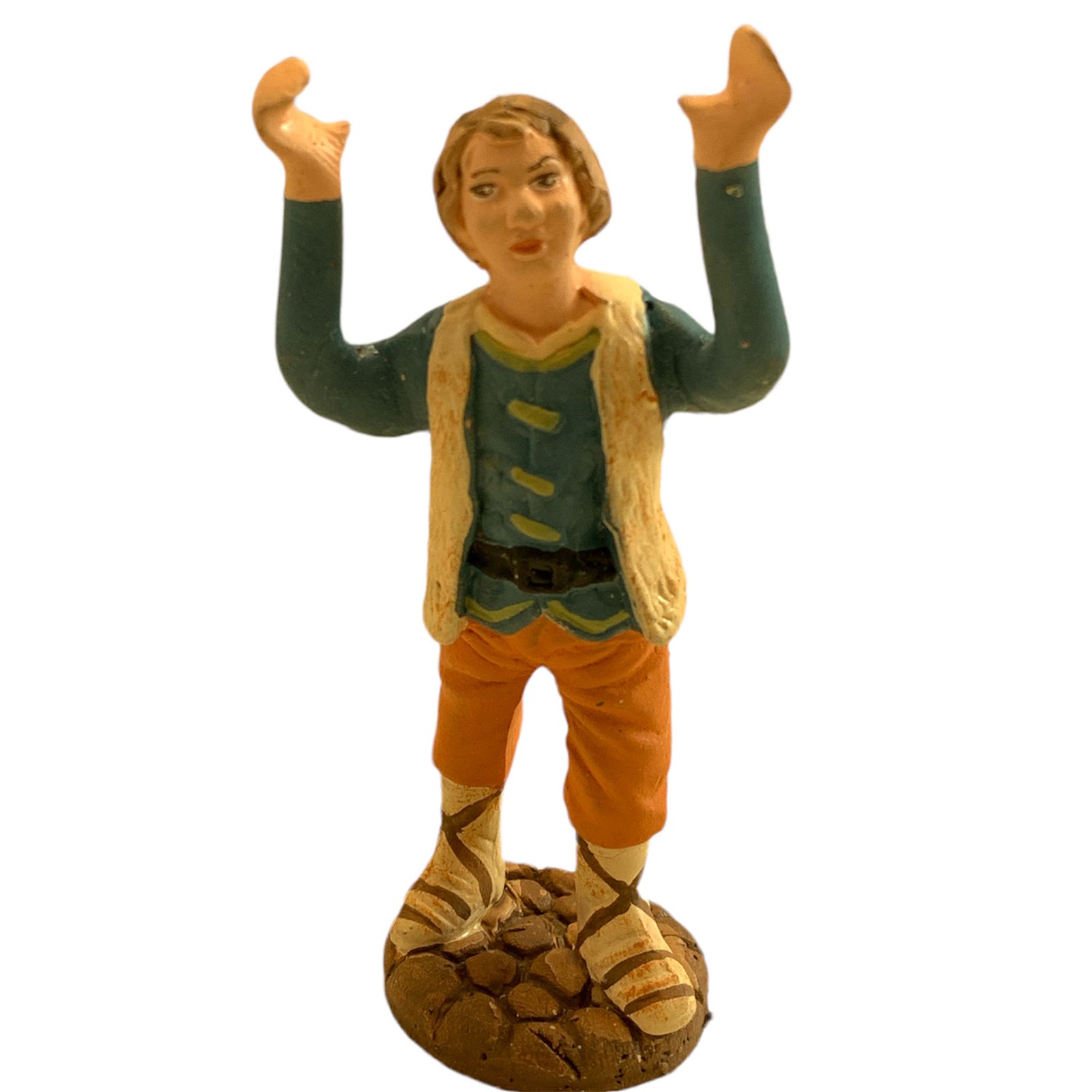 Pastore con mani alzate statuetta in terracotta artigianale per presepe napoletano da h 7 cm