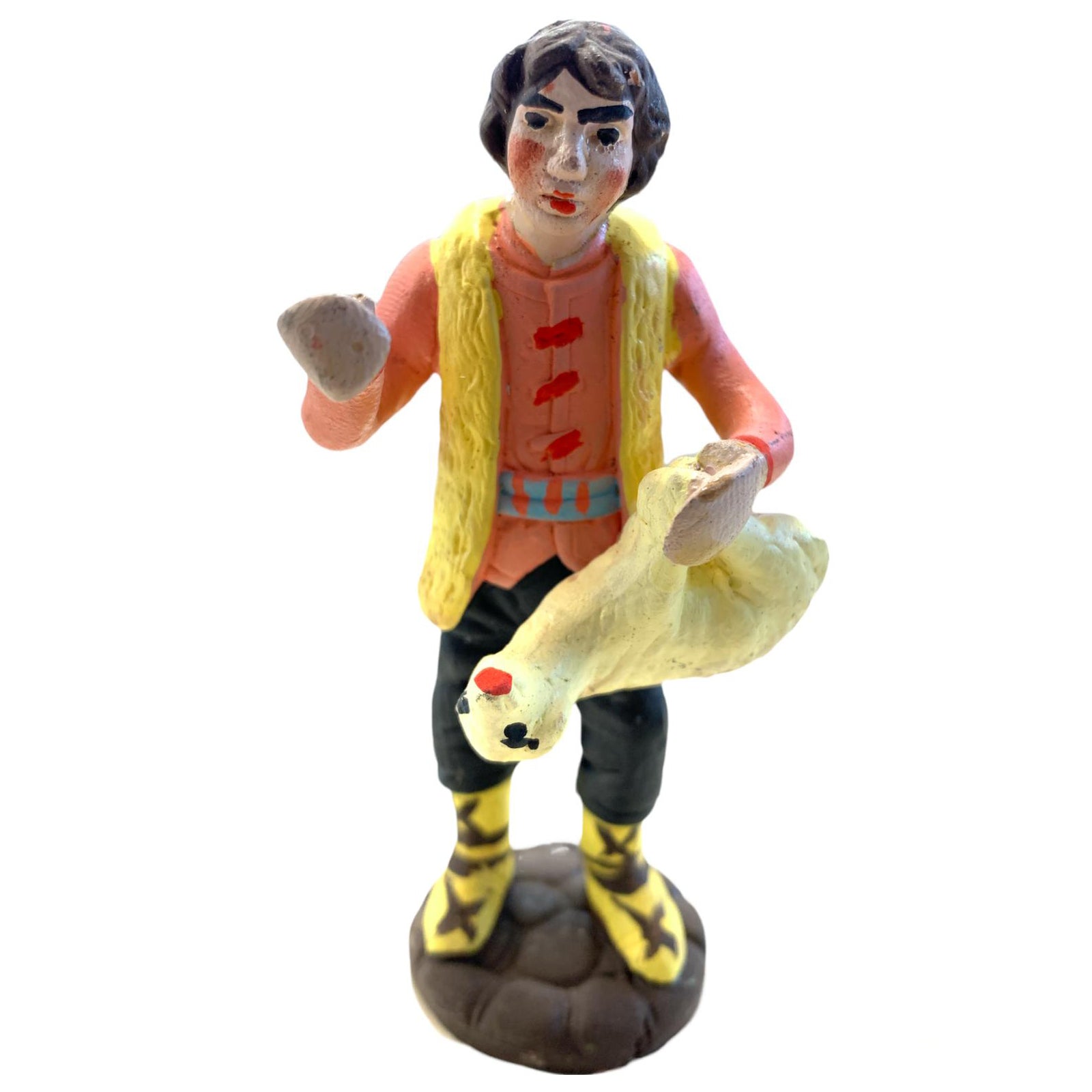 Pastore con pecora statuetta in terracotta artigianale per presepe napoletano da h 10 cm