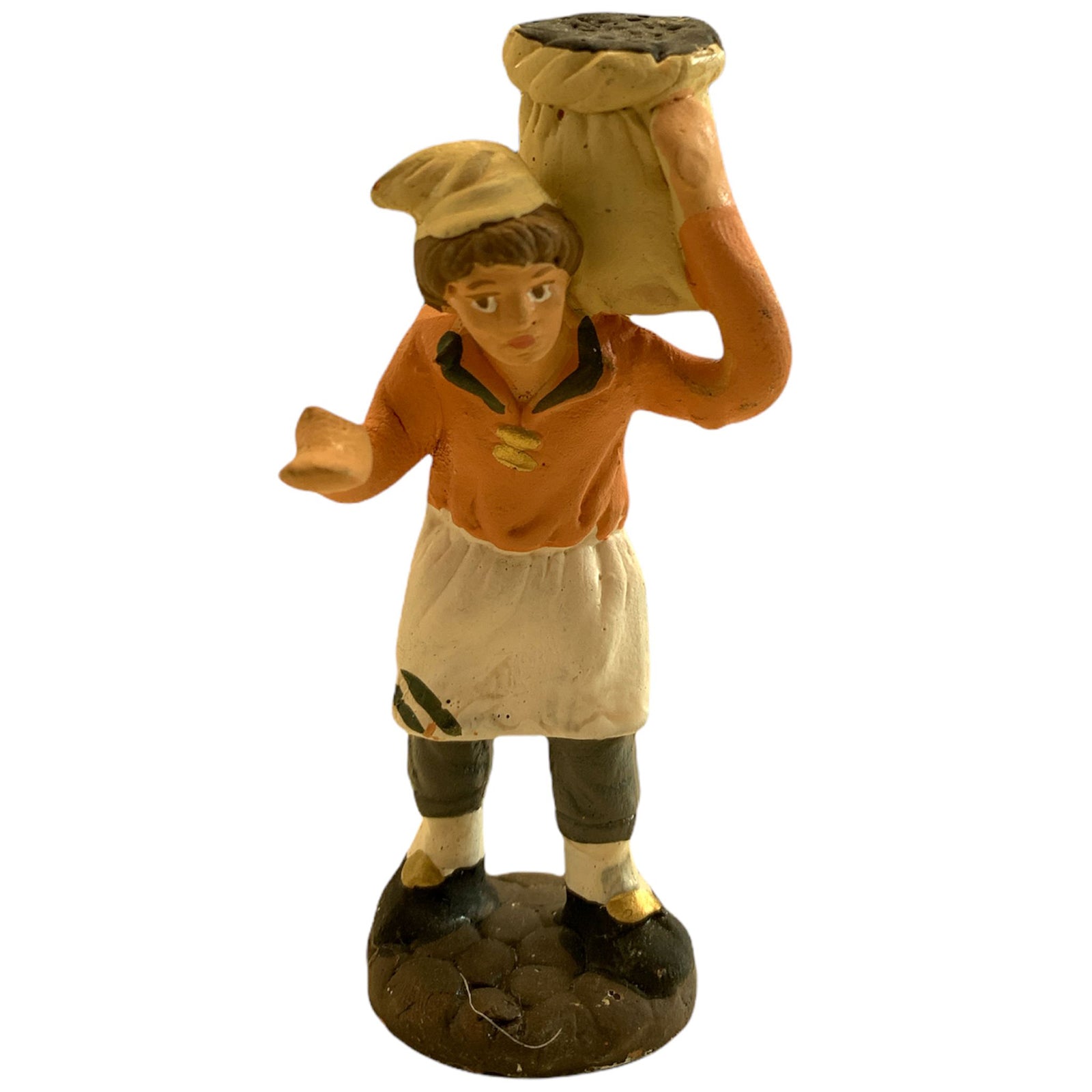 Pastore con sacco statuetta in terracotta artigianale per presepe napoletano da h 7 cm