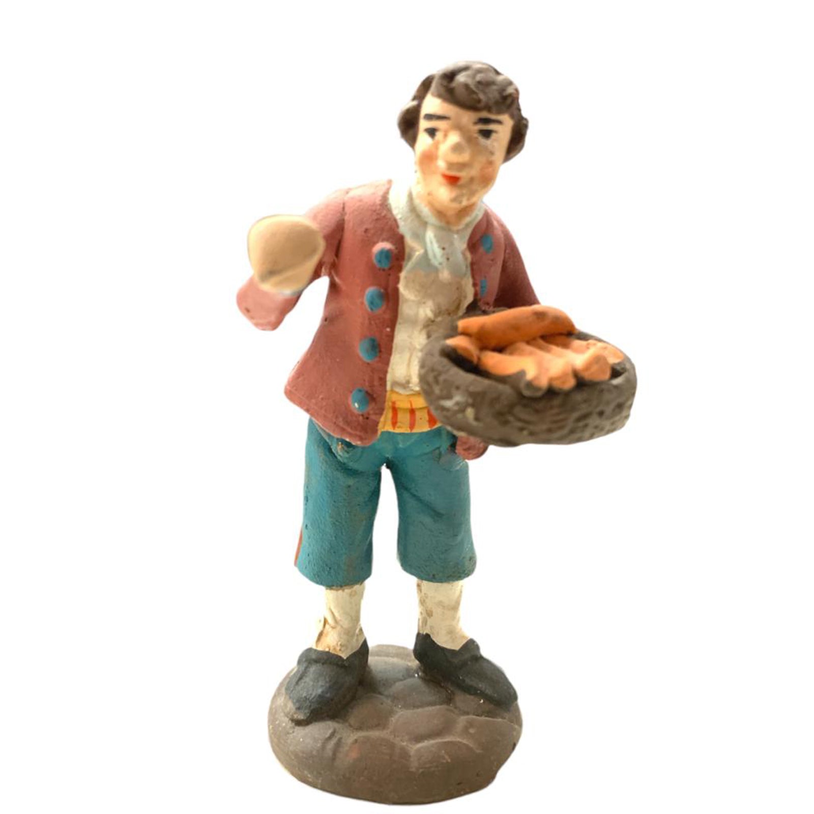 Pastore con vassoio statuetta in terracotta artigianale per presepe napoletano da h 10 cm