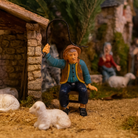 Statuetta per presepe natalizio uomo seduto con una frusta lucida h 10 cm