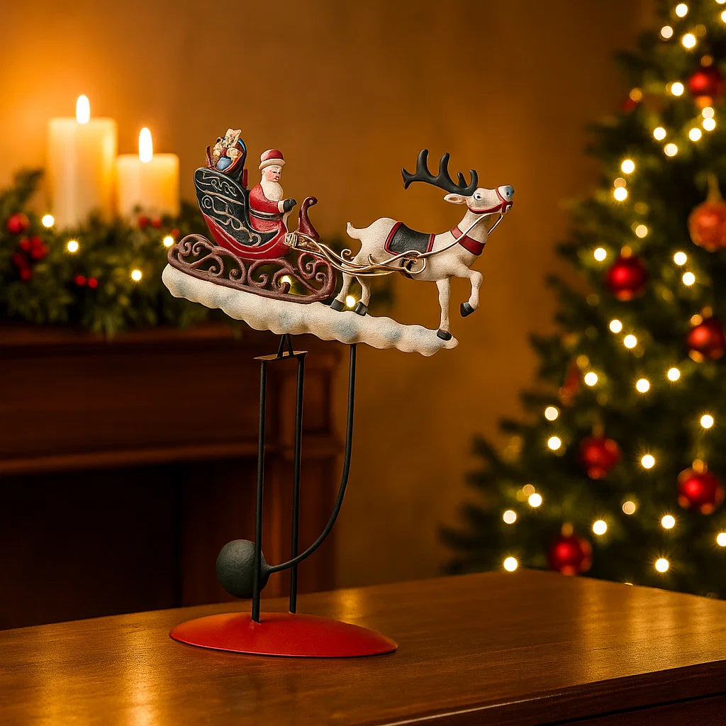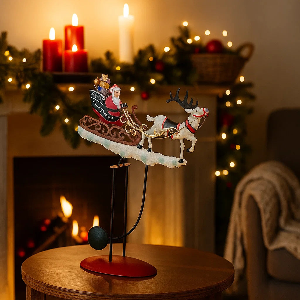 Statuetta con babbo natale con slitta e renne decorazione per interno h 32 cm