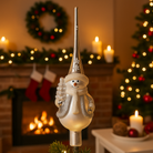 Aggiungi un tocco di magia e raffinatezza al tuo albero con questo splendido puntale natalizio bianco e argento, perfetto per completare la tua decorazione con stile.