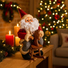 Babbo Natale che balla con musica e cavalluccio in tessuto e plastica da 25 cm