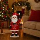 La figura di Babbo Natale è rappresentata con grande cura nei dettagli, indossando il tradizionale abito rosso con bordi bianchi, una folta barba bianca e un sorriso accogliente, che trasmette calore e allegria.