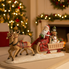 Questa decorazione natalizia raffigura Babbo Natale a bordo della sua slitta trainata dai fedeli daini, pronta a portare doni e allegria.