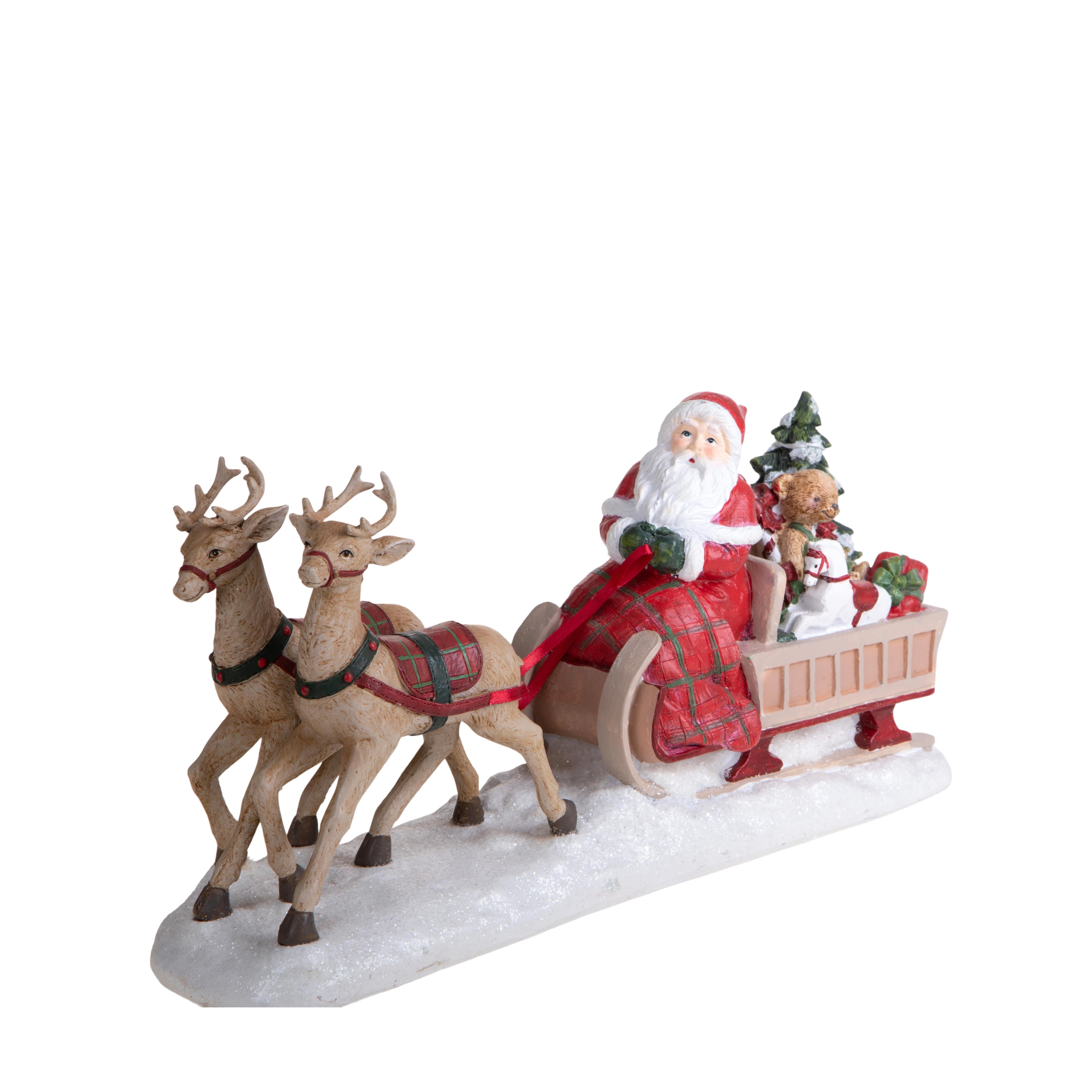 Pupazzo di Babbo Natale su slitta con Daini decorazione natalizia da 41 cm