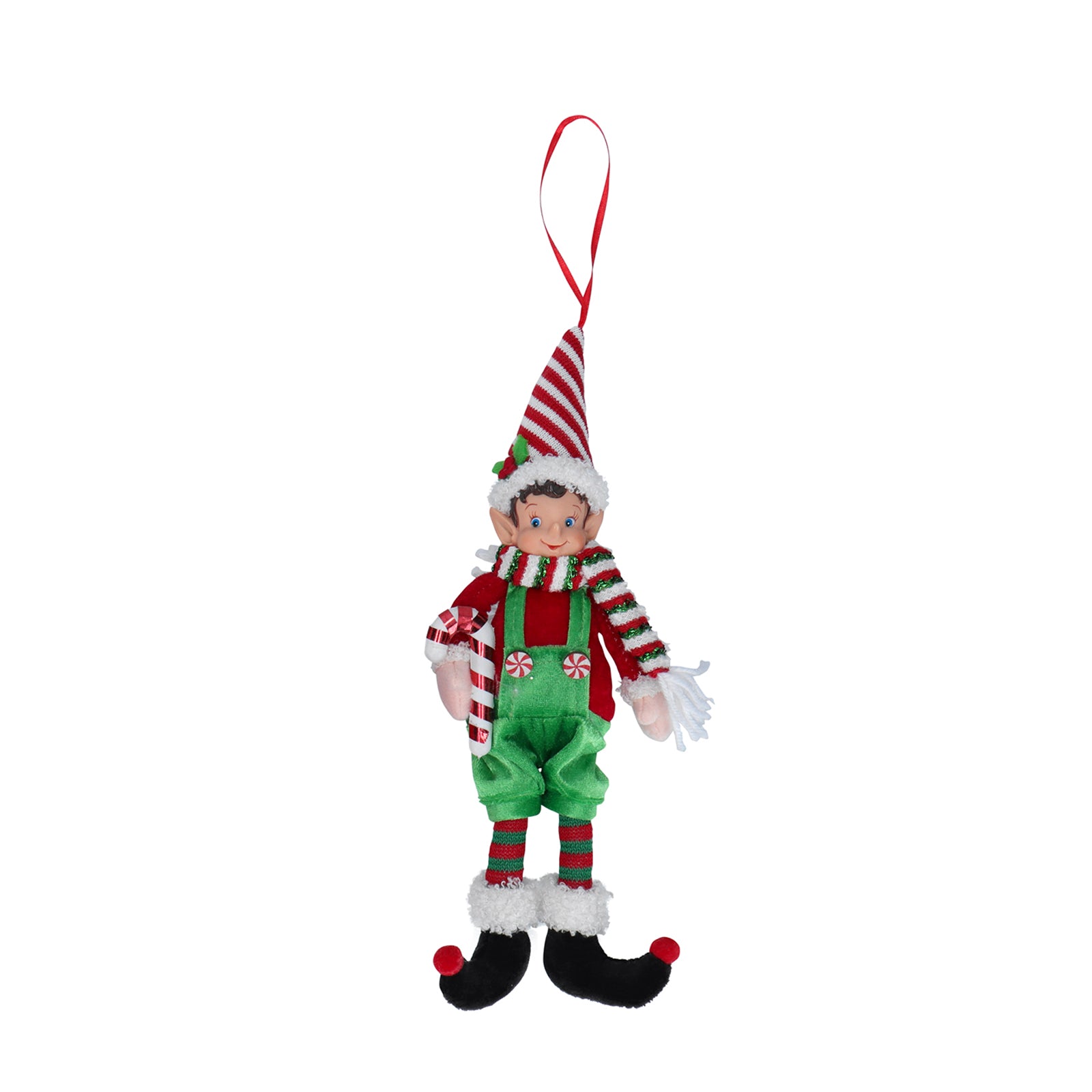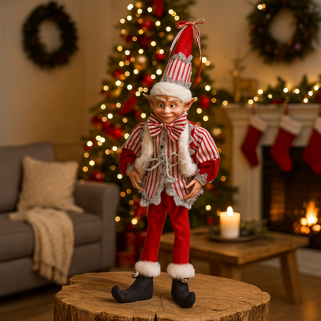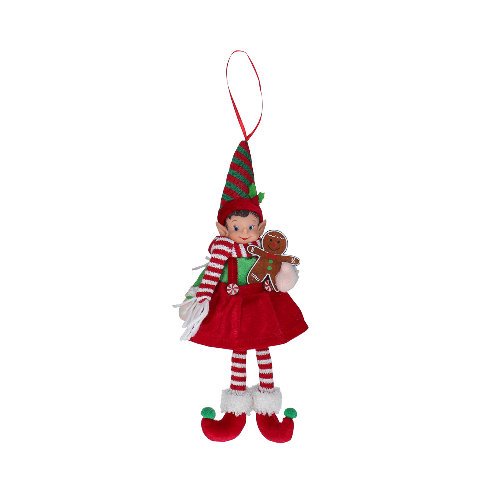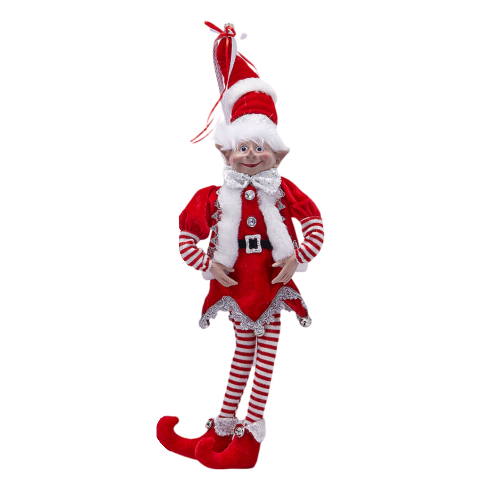 Elfo per scherzi bambini con vestito rosso in stoffa decorazione natalizia da 35 cm