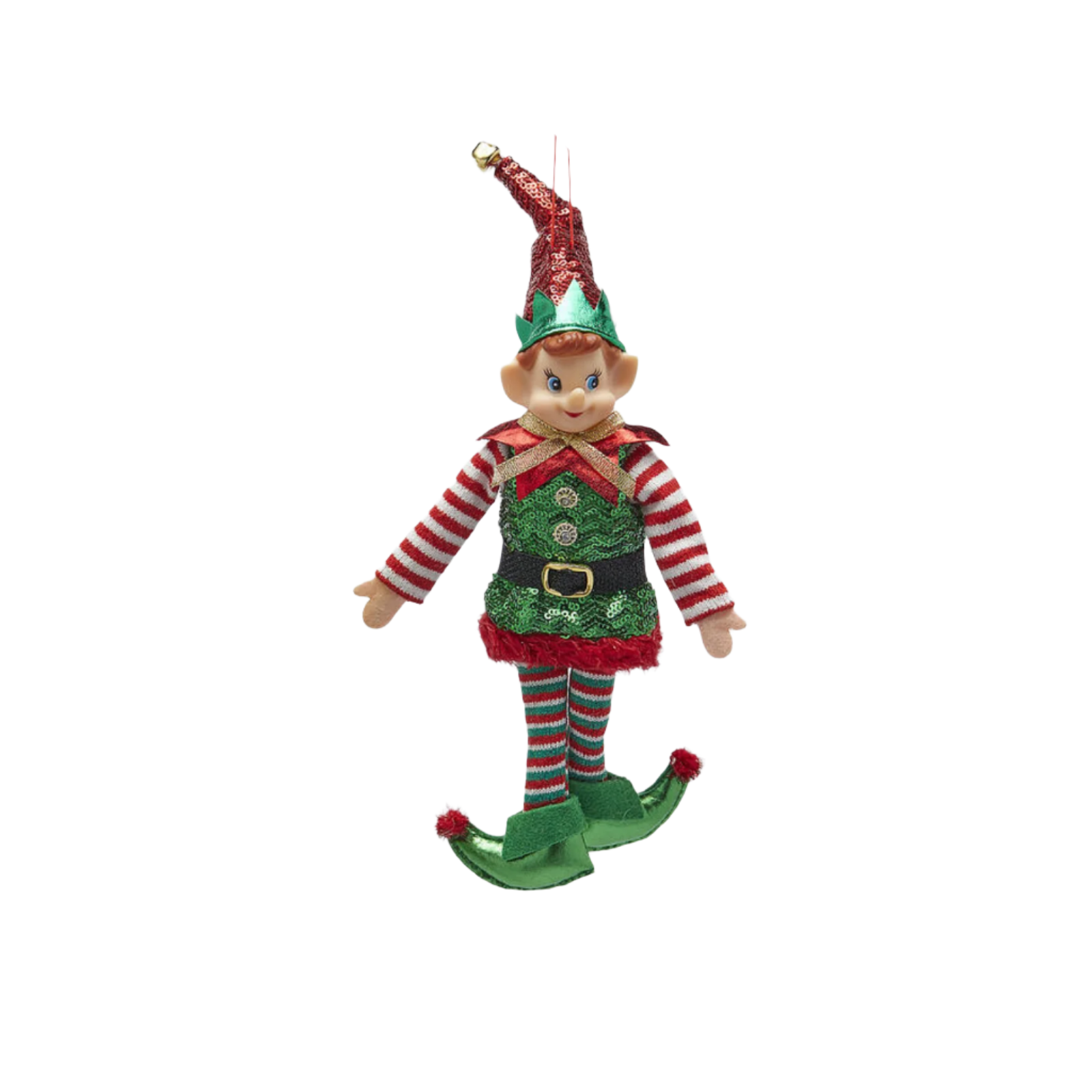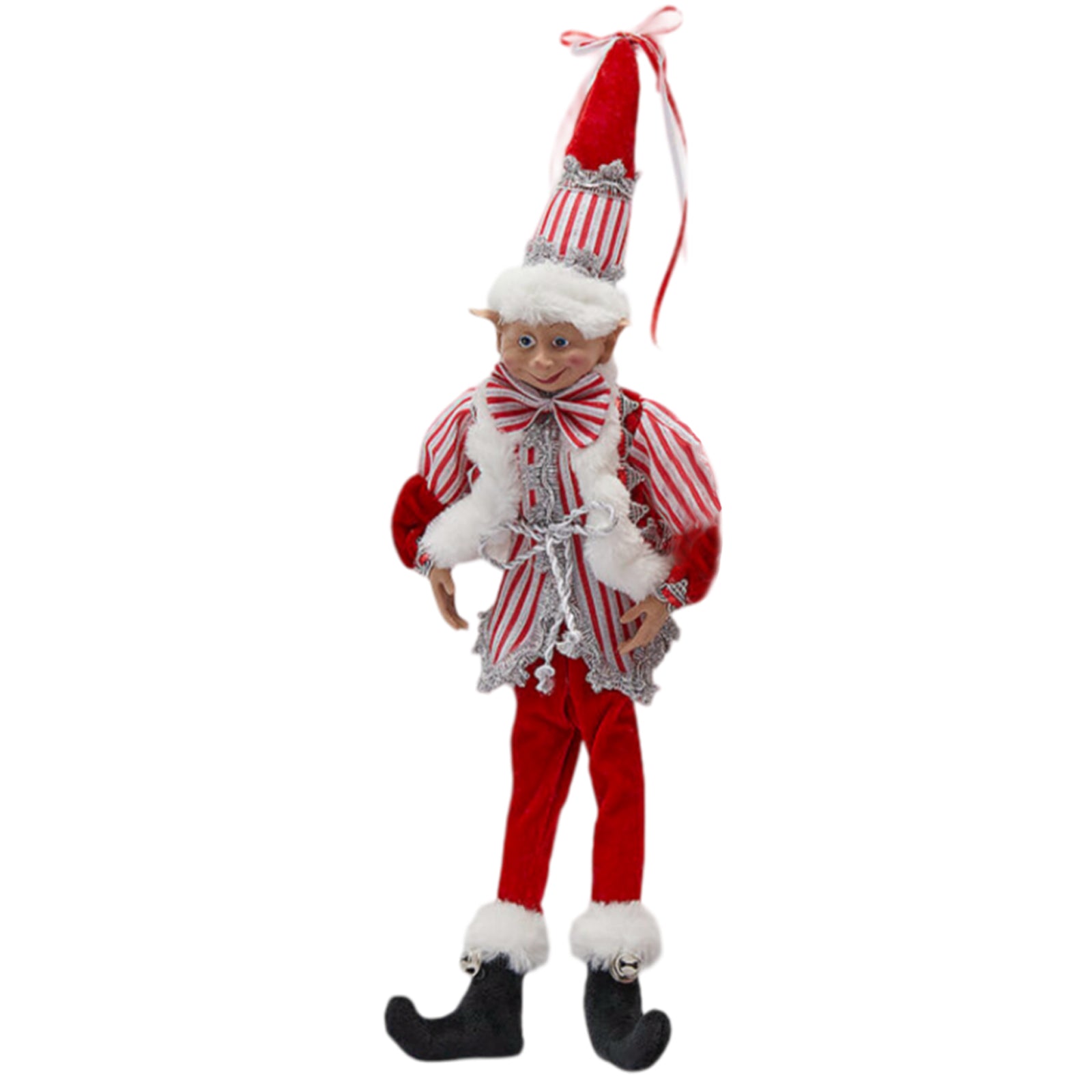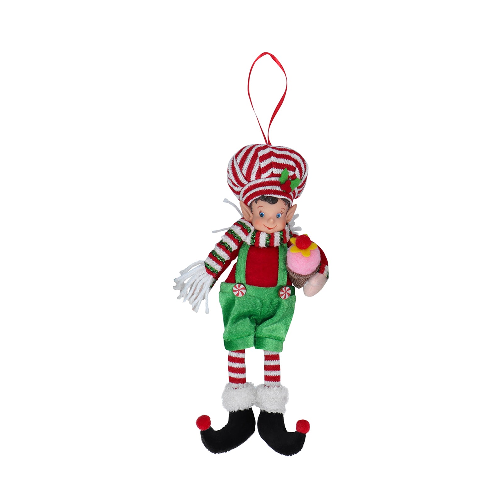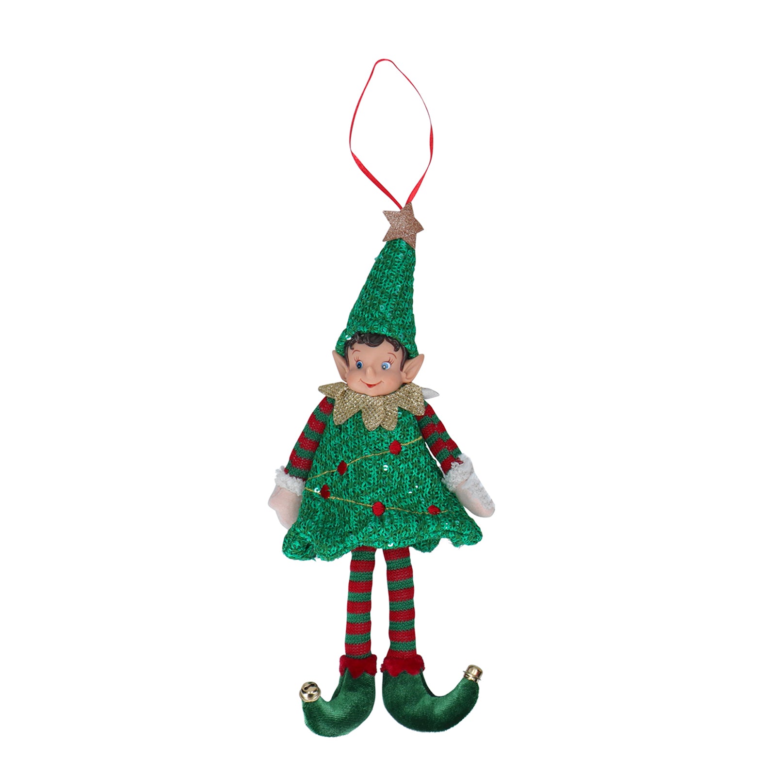 Elfo per scherzi bambini con vestito rosso in stoffa decorazione natalizia da 35 cm