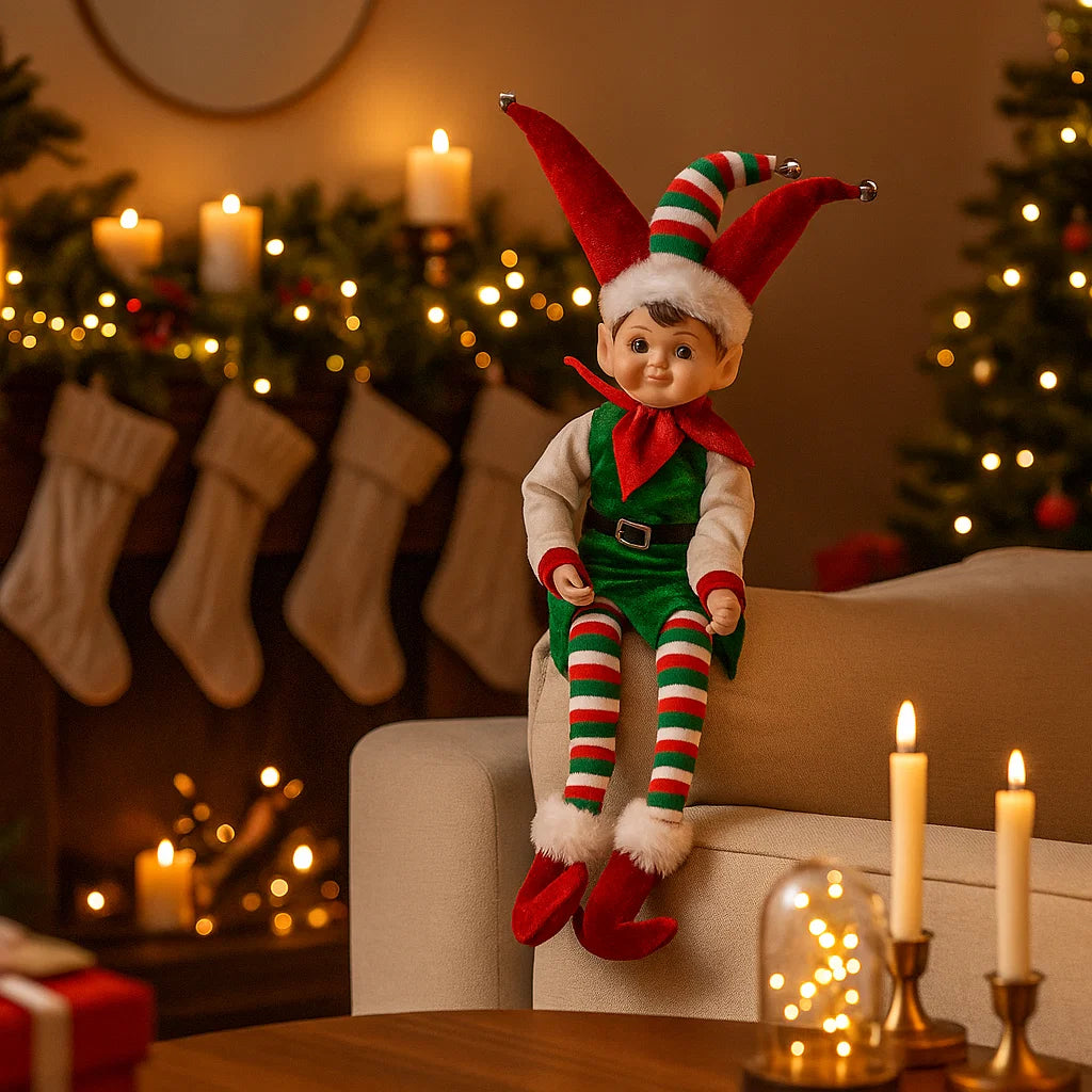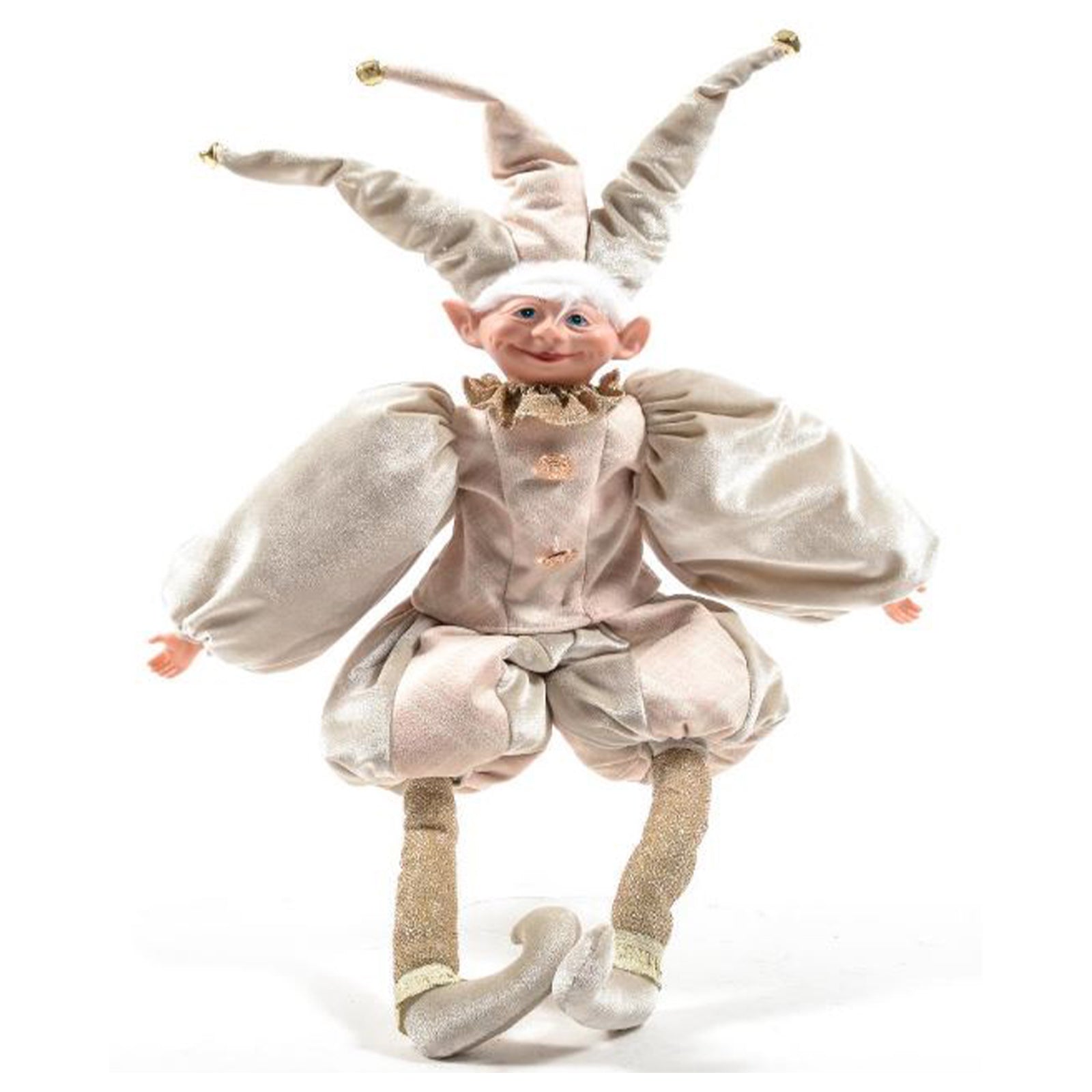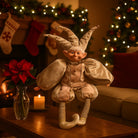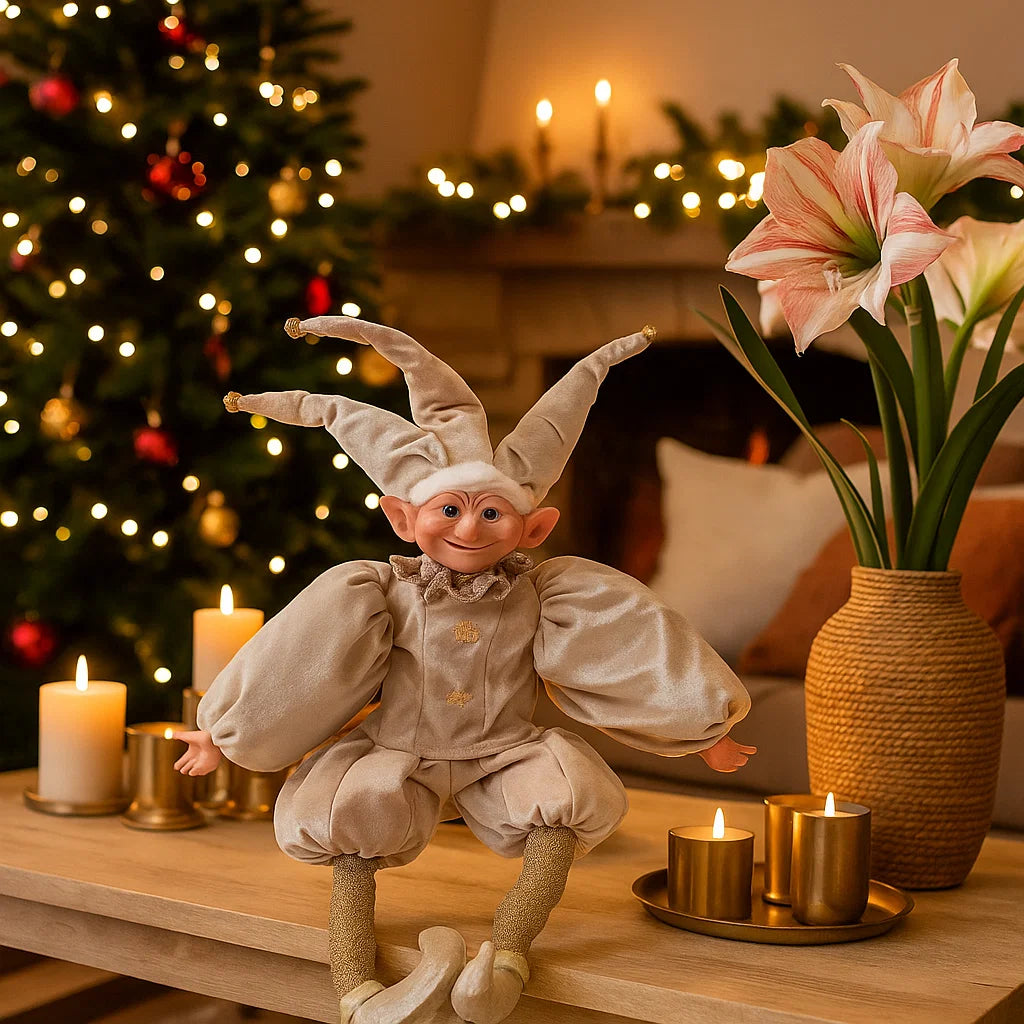 Realizzato interamente in tessuto argentato di alta qualità, questo folletto incarna lo spirito gioioso e giocoso del Natale.