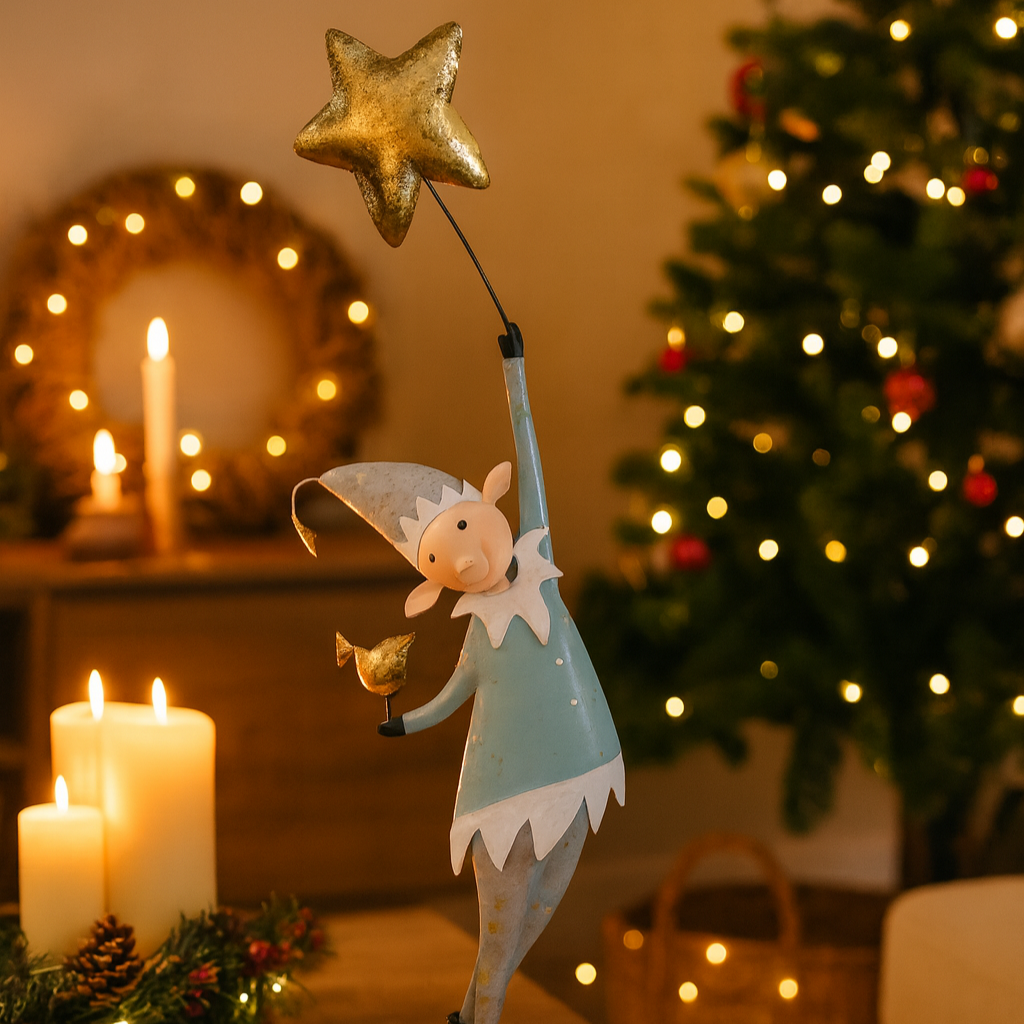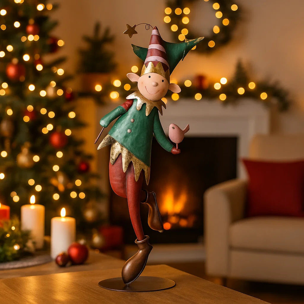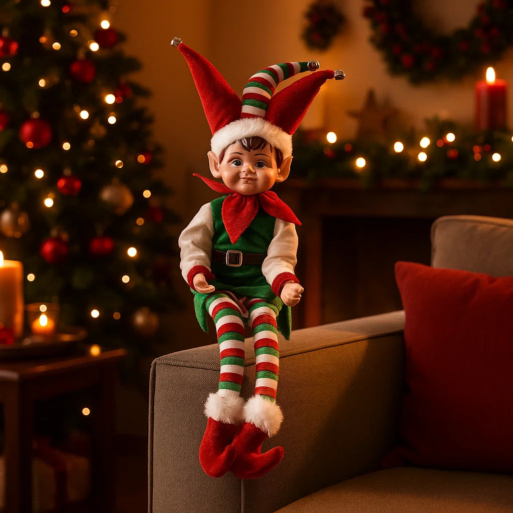 Realizzato interamente in tessuto argentato di alta qualità, questo folletto incarna lo spirito gioioso e giocoso del Natale.