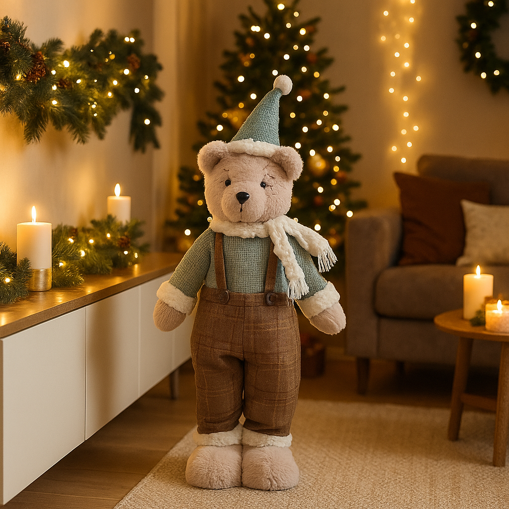 Imponente, tenero e irresistibilmente morbido: questo orso di Natale in peluche da 75 cm è una decorazione natalizia capace di conquistare grandi e piccini. Il suo aspetto accogliente e festoso lo rende perfetto per creare angoli scenografici pieni di calore e magia. Grazie alle sue dimensioni importanti e alla cura nei dettagli, diventa il protagonista ideale per l’ingresso, il salotto o la cameretta dei bambini, regalando un tocco di dolcezza e allegria all’intera casa durante le feste.