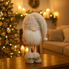 Il pupazzo di Babbo Natale in piedi in tessuto colore argento, alto 41 cm, è un affascinante ornamento natalizio progettato per aggiungere un tocco di eleganza e festività alla decorazione di casa durante il periodo natalizio.