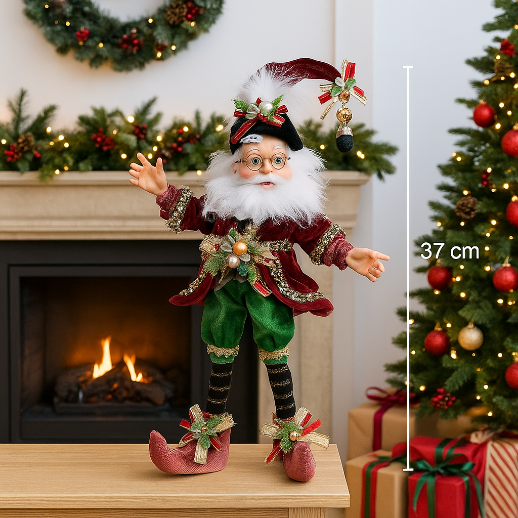 Aggiungi un tocco di magia e simpatia alle tue decorazioni natalizie con questo adorabile elfo decorativo! Vestito nei classici colori del Natale – rosso brillante e verde smeraldo – questo simpatico aiutante di Babbo Natale porta allegria in ogni angolo della casa. Con il suo visetto sorridente e l'aspetto curato nei minimi dettagli, è pronto a diventare il protagonista delle tue feste.