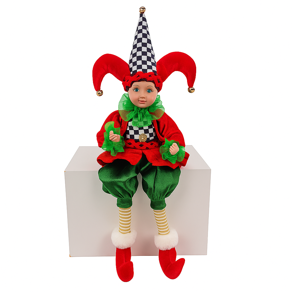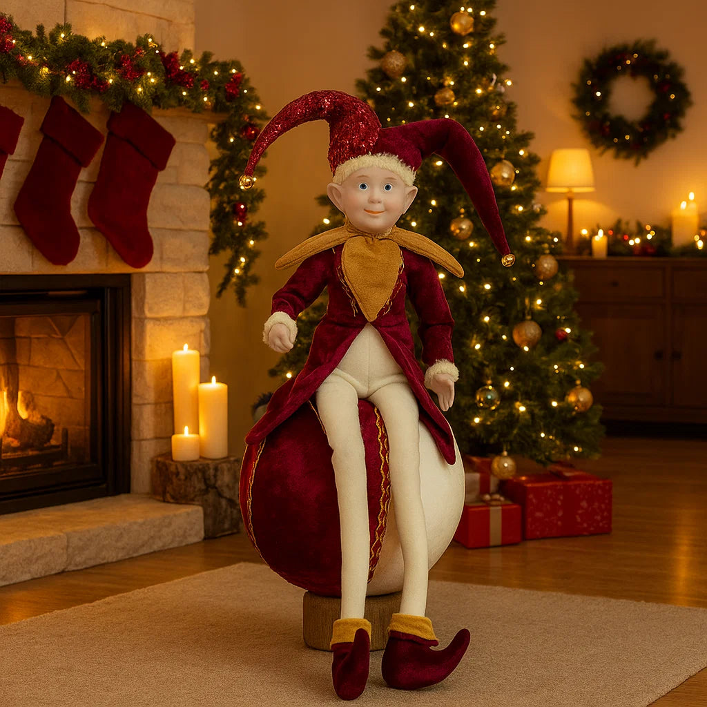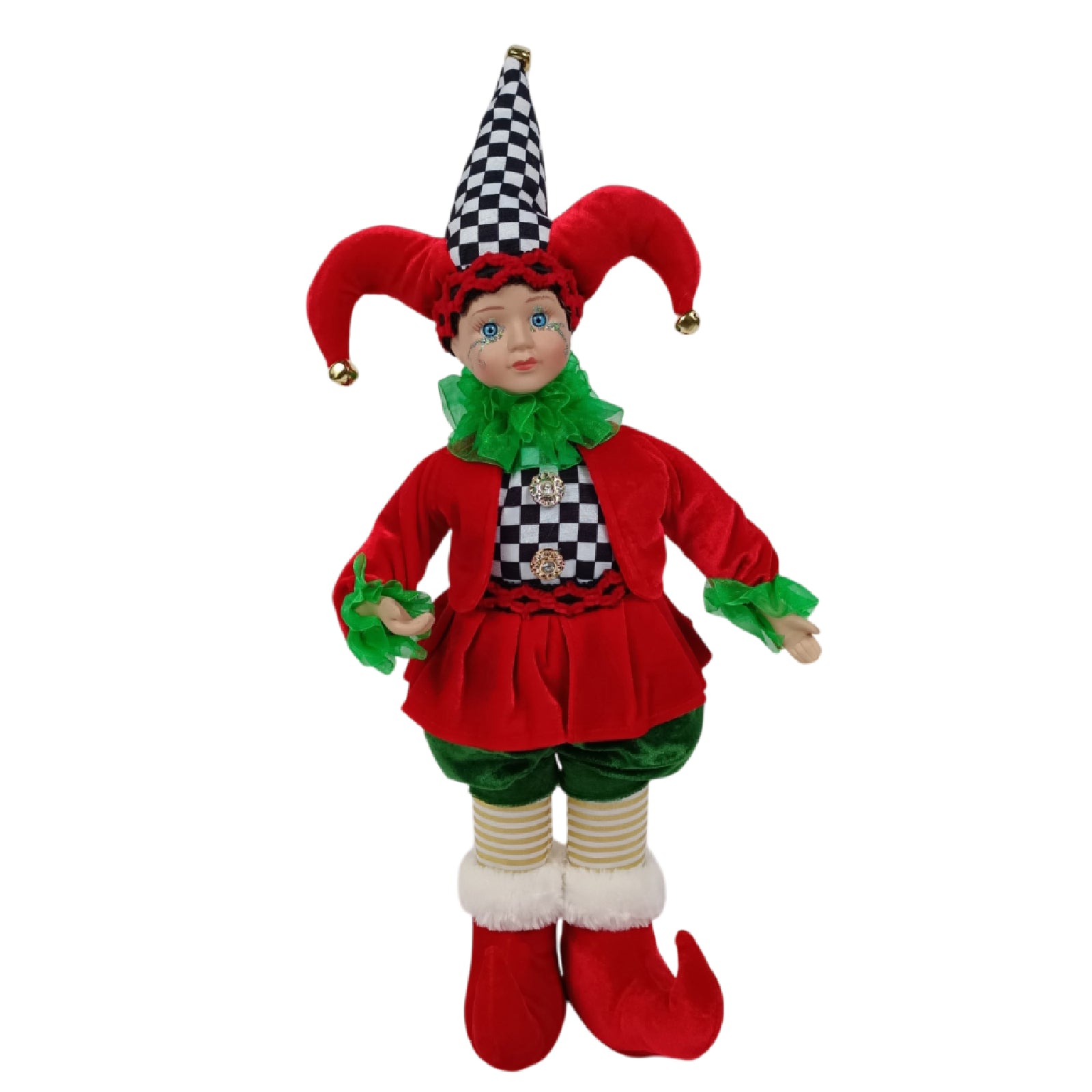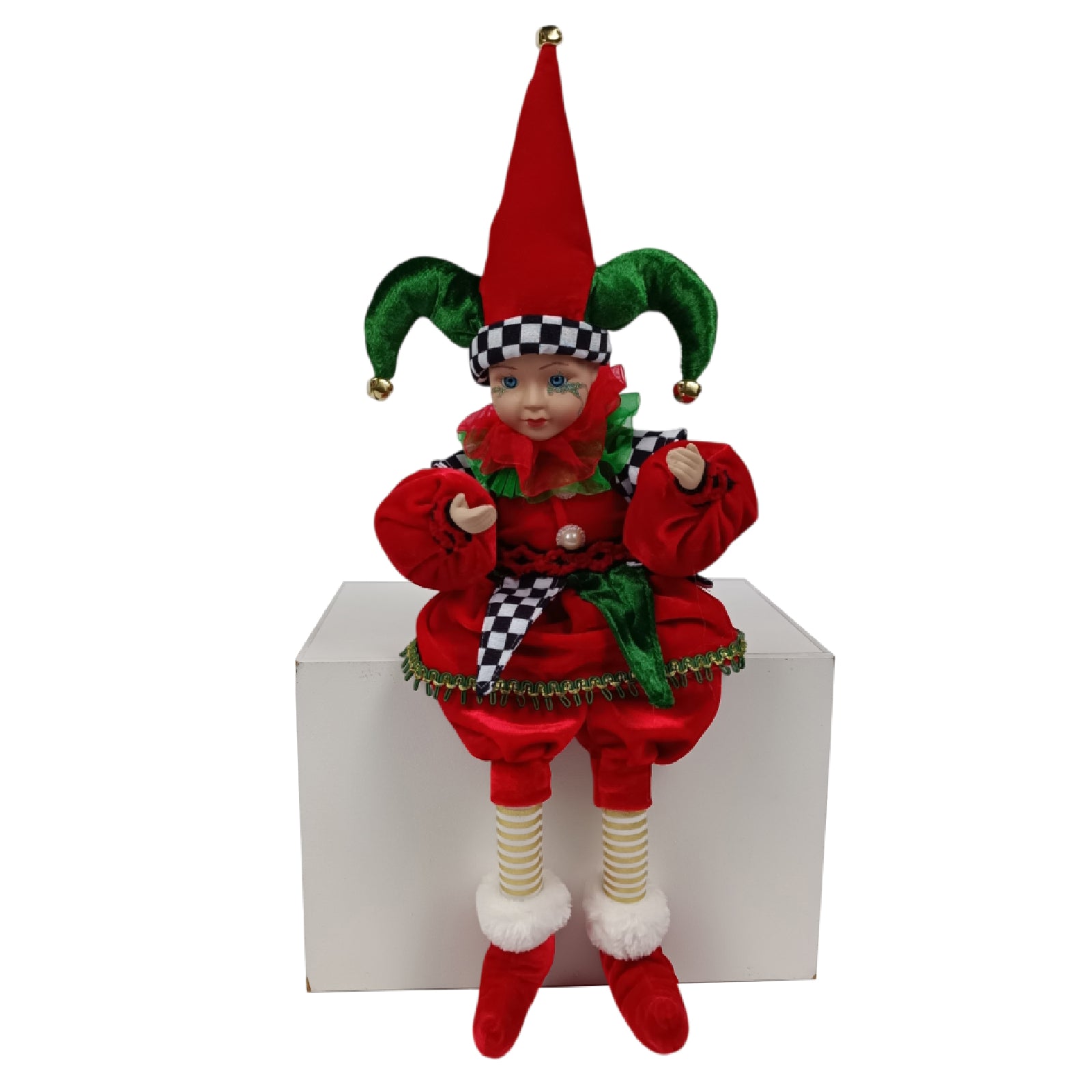 Pupazzo in Velluto Rosso "Giullare Seduto" decorazione natalizia h 50 cm