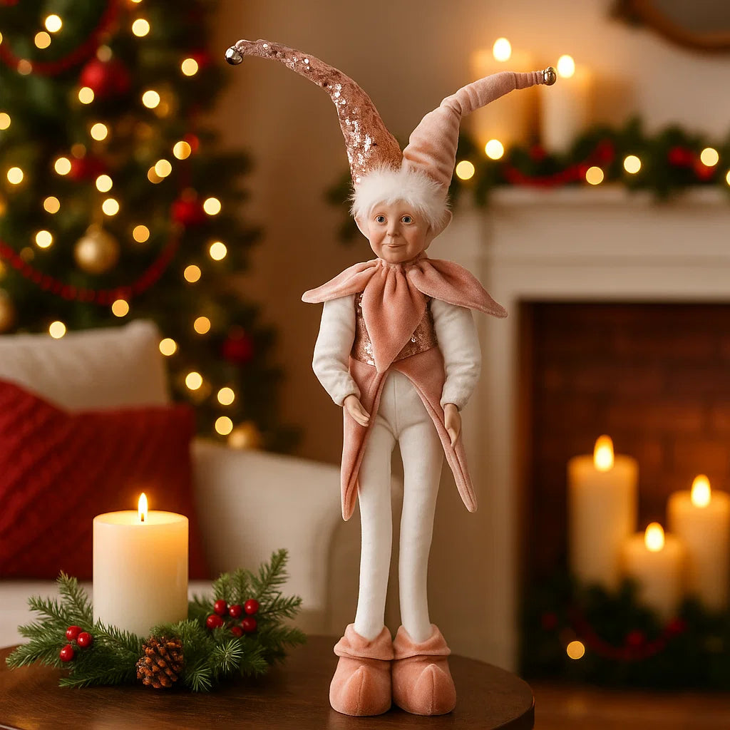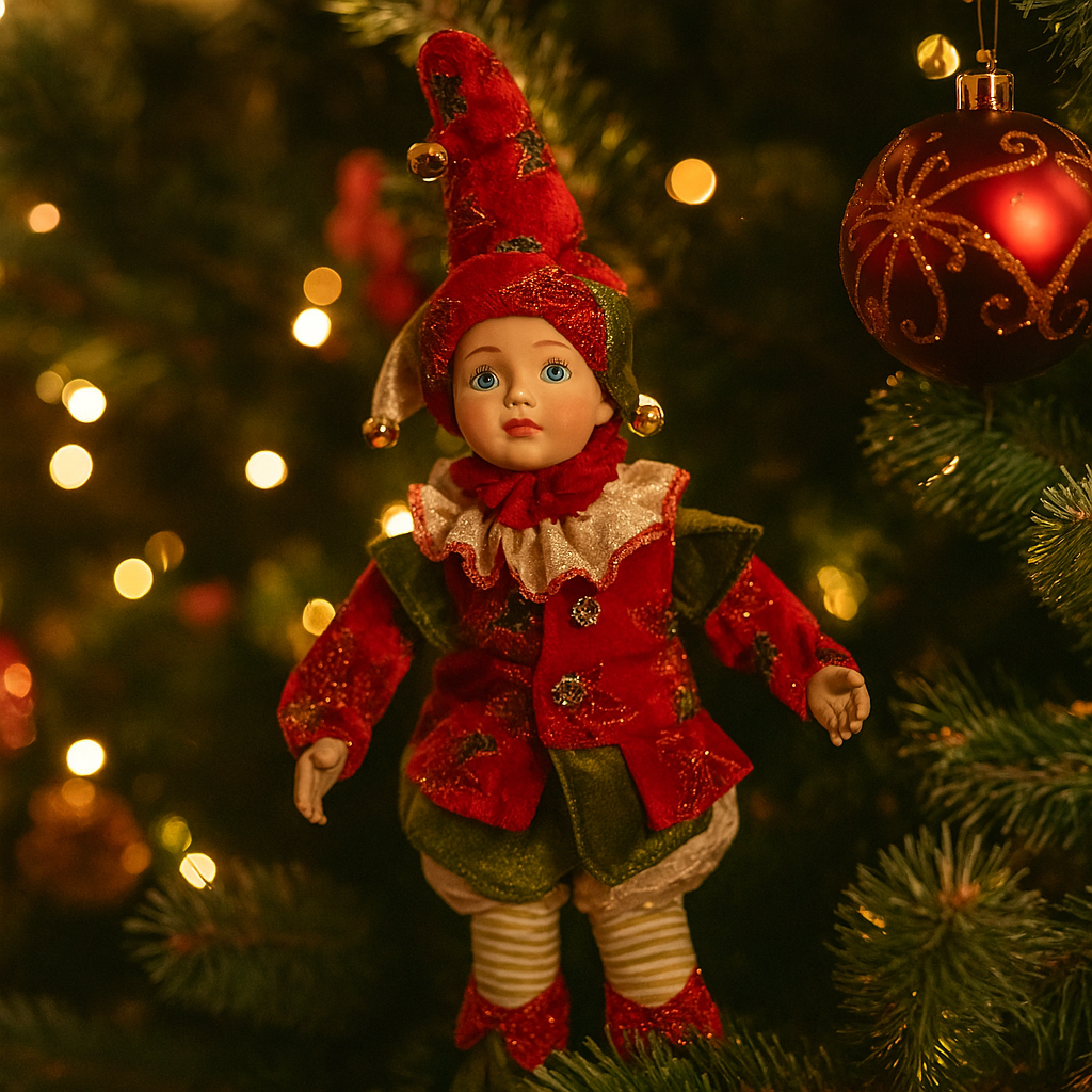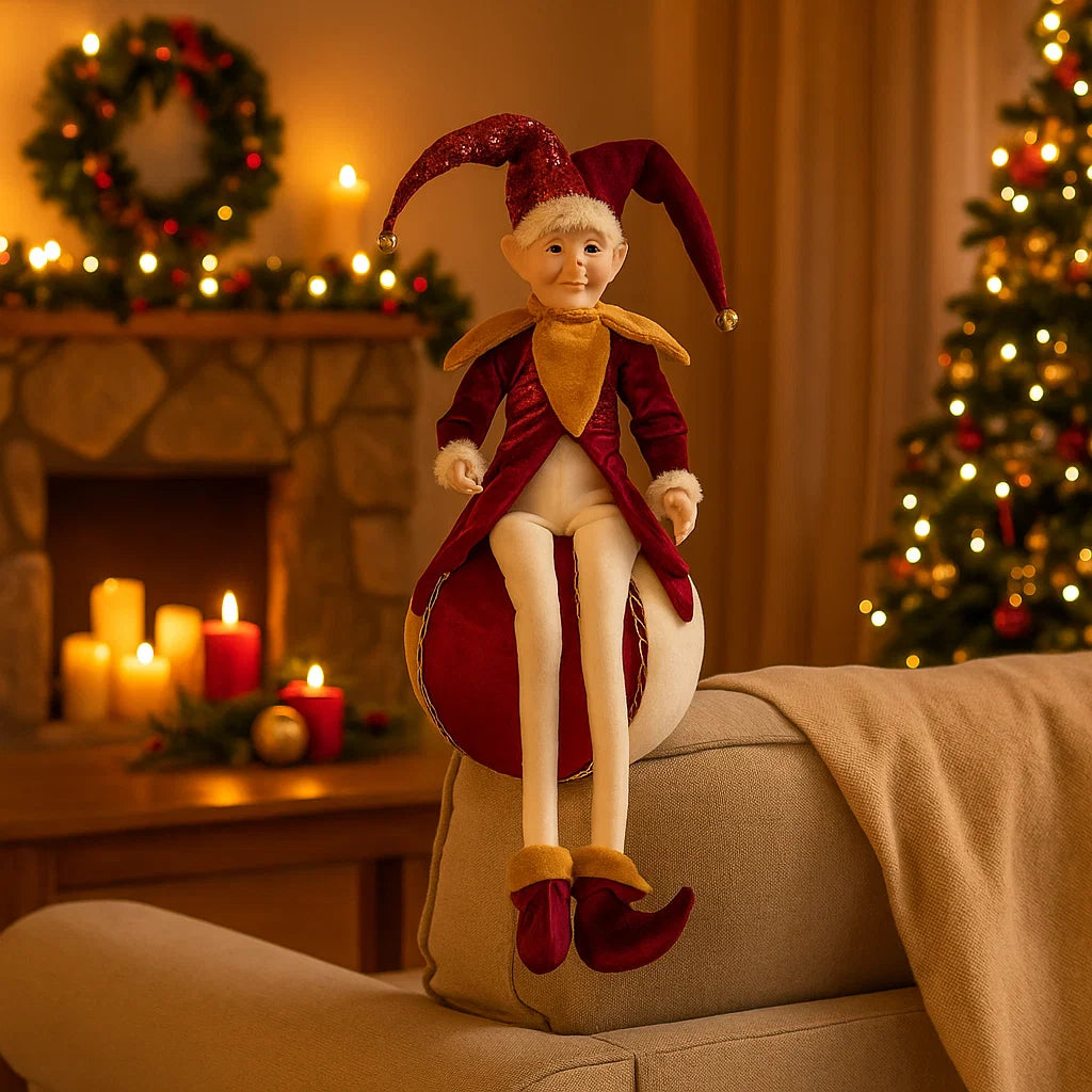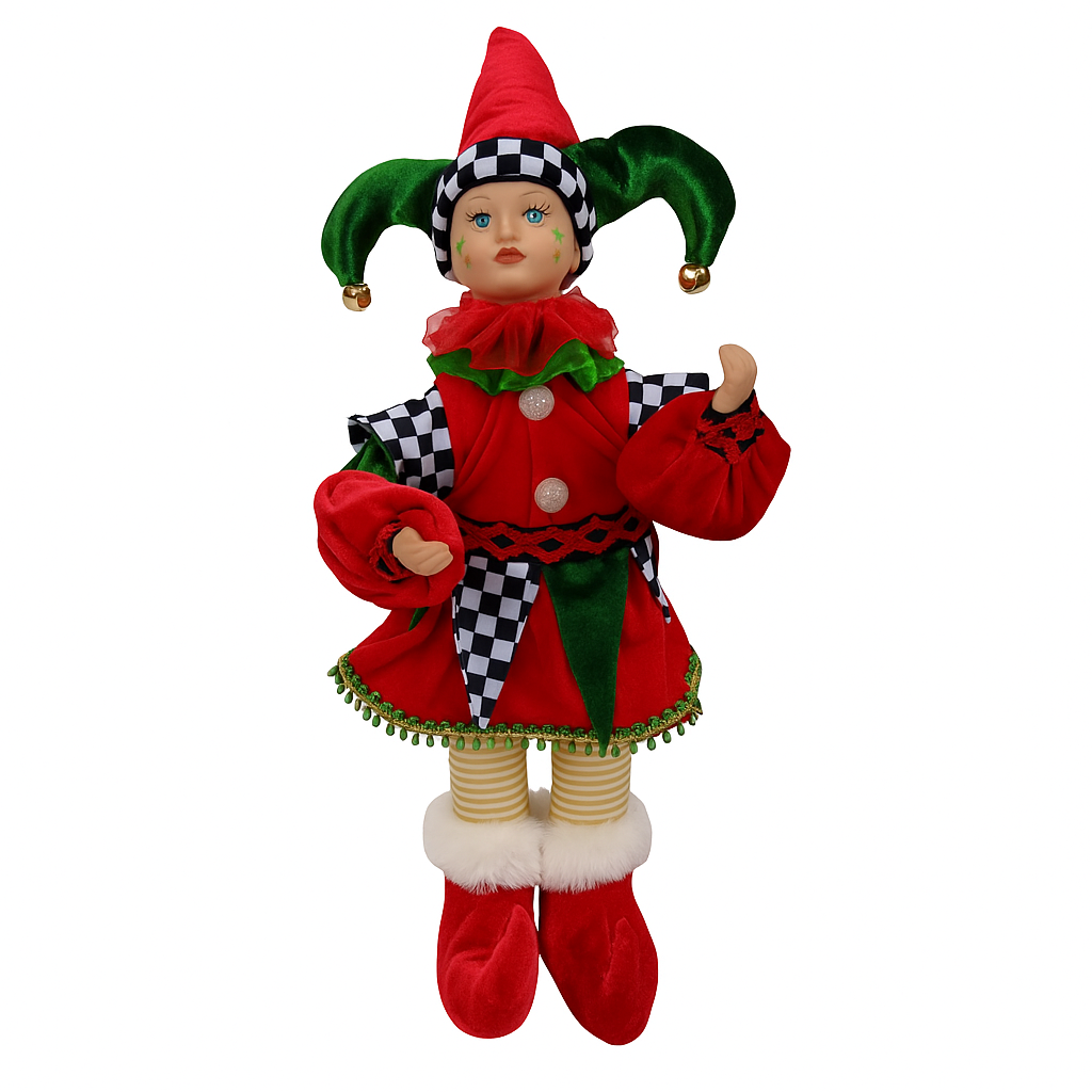 Pupazzo in Velluto Rosso "Giullare Seduto" decorazione natalizia h 50 cm