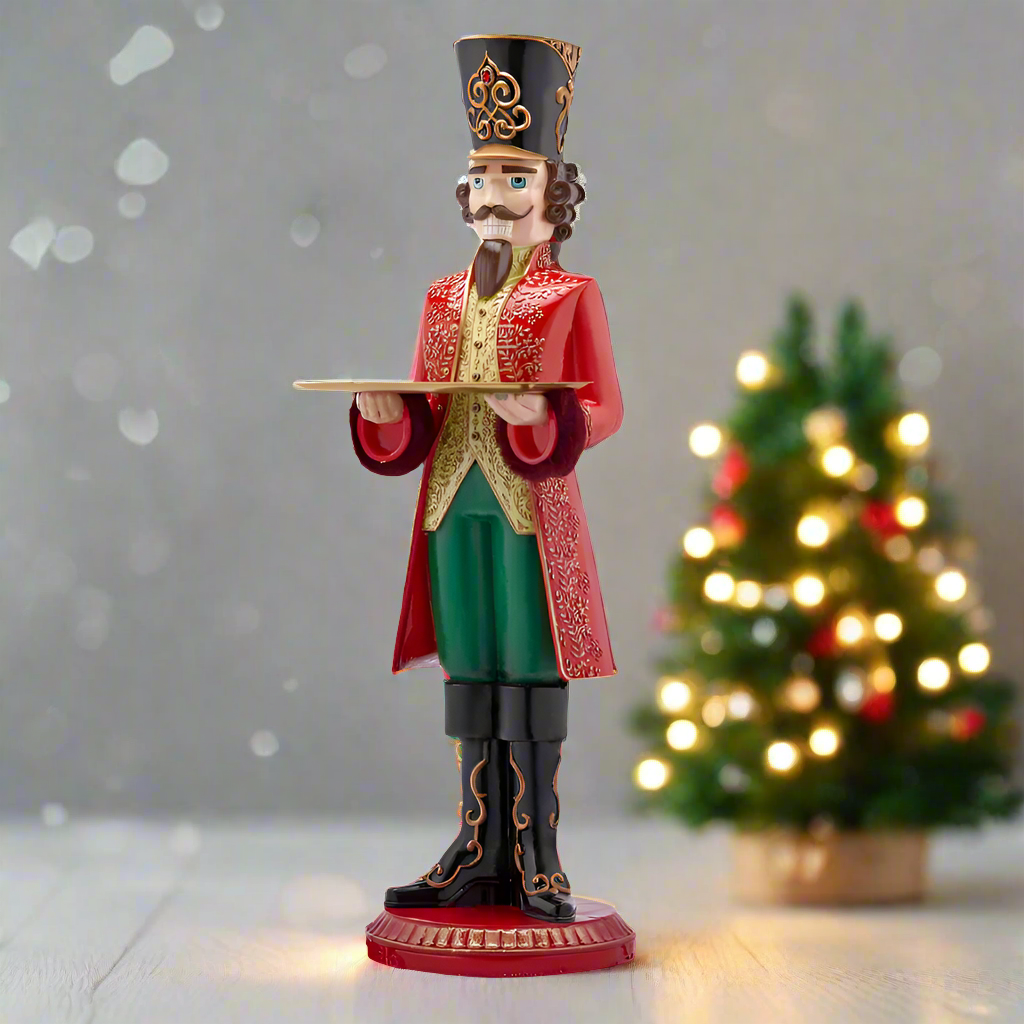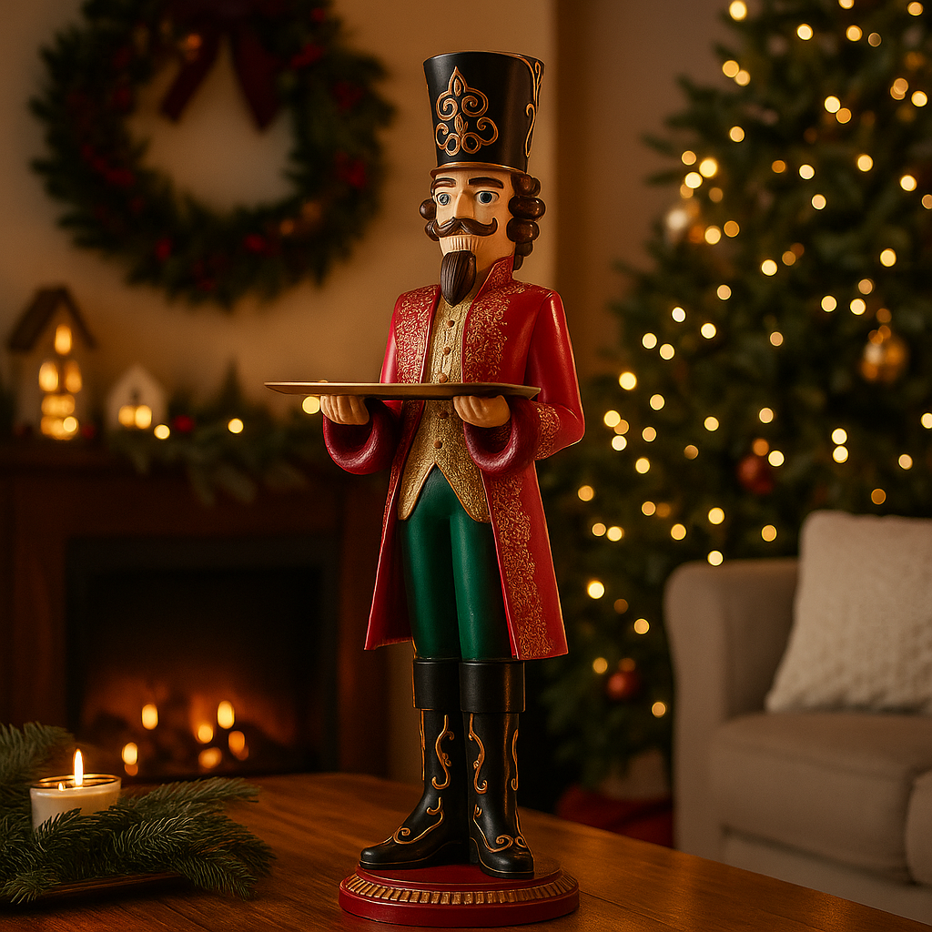 Soldatino schiaccianoci con vassoio in resina decorazione natalizia, h 106 cm